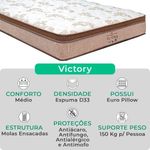 Cama Box Baú Solteirão E Colchão Victory Molas V-store Cor:pretoA tecnologia que a sua casa merece está na V-Store!O colchão Victory Solteiro da V-Store oferece noites de sono tranquilas e confortáveis, com seu toque macio e sistema de molas ensacadas que garantem suporte ideal e independência de movimentos. O Pillow Euro Pillow proporciona ainda mais suavidade, enquanto a tecnologia EPS adiciona resistência e durabilidade. Com proteções contra ácaros, fungos, mofo e alergias, ele garante um ambiente de sono saudável. Suporta até 150 kg por pessoa e tem garantia de 12 meses.A Base Box Baú Bravus da V-Store combina praticidade e sofisticação, com madeira reflorestada e revestimento sintético que facilitam a manutenção. Seu design otimiza o espaço de armazenamento e oferece resistência, suportando até 150 kg por pessoa. Com 44 cm de altura total e Selo Ecologicamente Correto, ela é ideal para quem busca sustentabilidade e qualidade. Transforme seu quarto com o colchão Victory e a Base Box Baú Bravus da V-Store!Característica Do Colchão:Modelo: VictoryMarca: V-StoreTamanho: SolteirãoDimensões: 96x30x203 (Largura x Altura x Comprimento)Conforto: MédioSistema: Molas EnsacadasPillow: Euro PillowPeso Máximo recomendado: 150 kg (Por pessoa)Proteções: Antiácaro, antialérgico, antifungo, antimofoGarantia: 12 Meses (Espuma) / 10 anos ( Conjunto de Molas Ensacadas)Característica Da Base:Marca: V-StoreModelo: BravusTamanho: SolteirãoDimensões: 96x44x203 (Largura x Altura x Comprimento)Estrutura: MadeiraPeso máximo recomendado: 150 kg (Por Pessoa)Altura do Box: 38 cmAltura dos Pés: 6 cmAltura total: 44 cmGarantia: 12 Meses (Estrutura) / 3 meses (Tecido)Selo Ecologicamente CorretoAtenção:- Antes de finalizar sua compra, recomendamos que verifique se as dimensões do produto são adequadas para serem transportadas pelos elevadores, portas, escadas e corredores de sua residência. Ressaltamos que não nos responsabilizamos pelo transporte do produto por meios específicos, como escadas, guinchos ou içamentos.- É possível que hajam leves variações de cor de acordo com o dispositivo que está sendo utilizado como smartphones, computadores, monitores e outros.