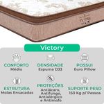 Cama Box Baú Solteiro Cinza E Colchão Victory Molas VstoreA tecnologia que a sua casa merece está na V-Store!O colchão Victory Solteiro da V-Store oferece noites de sono tranquilas e confortáveis, com seu toque macio e sistema de molas ensacadas que garantem suporte ideal e independência de movimentos. O Pillow Euro Pillow proporciona ainda mais suavidade, enquanto a tecnologia EPS adiciona resistência e durabilidade. Com proteções contra ácaros, fungos, mofo e alergias, ele garante um ambiente de sono saudável. Suporta até 150 kg por pessoa e tem garantia de 12 meses.A Base Box Baú Bravus da V-Store combina praticidade e sofisticação, com madeira reflorestada e revestimento sintético que facilitam a manutenção. Seu design otimiza o espaço de armazenamento e oferece resistência, suportando até 150 kg por pessoa. Com 44 cm de altura total e Selo Ecologicamente Correto, ela é ideal para quem busca sustentabilidade e qualidade. Transforme seu quarto com o colchão Victory e a Base Box Baú Bravus da V-Store!Característica Do Colchão:Modelo: VictoryMarca: V-StoreTamanho SolteiroDimensões: 88x30x188 (Largura x Altura x Comprimento)Conforto: MédioSistema: Molas EnsacadasPillow: Euro PillowPeso Máximo recomendado: 150 kg (Por pessoa)Proteções: Antiácaro, antialérgico, antifungo, antimofoGarantia: 12 Meses (Espuma) / 10 anos ( Conjunto de Molas Ensacadas)Característica Da Base:Marca: V-StoreModelo: BravusCor do Box: CinzaTamanho SolteiroDimensões: 88x44x188 (Largura x Altura x Comprimento)Estrutura: MadeiraPeso máximo recomendado: 150 kg (Por Pessoa)Altura do Box: 38 cmAltura dos Pés: 6 cmAltura total: 44 cmGarantia: 12 Meses (Estrutura) / 3 meses (Tecido)Selo Ecologicamente CorretoAtenção:- Antes de finalizar sua compra, recomendamos que verifique se as dimensões do produto são adequadas para serem transportadas pelos elevadores, portas, escadas e corredores de sua residência. Ressaltamos que não nos responsabilizamos pelo transporte do produto por meios específicos, como escadas, guinchos ou içamentos.- É possível que hajam leves variações de cor de acordo com o dispositivo que está sendo utilizado como smartphones, computadores, monitores e outros.