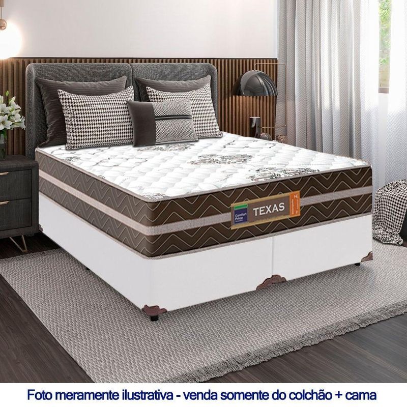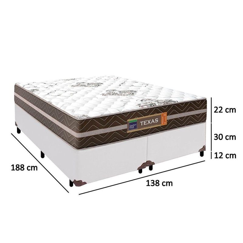Cama Box Casal Bipartido Sintético + Colchão Molas Ensacadas Texas Colchões 138cm - Suporta Até 120kg Por Pessoa CA Cama Box Casal Sintético + Colchão Molas Ensacadas Texas 138x188x64cmÉ uma combinação que oferece uma solução completa, agilidade e praticidade na aquisição da sua cama. O Colchão Casal Texas Molas Ensacadas foi criado pensando em você. Possui molas ensacadas em sua composição, o que proporciona um conforto único. A capacidade de suporte é de até 120kg por pessoa, garantindo conforto durante o sono, além de promover um melhor apoio e qualidade de vida.A Cama Box é a opção ideal para maior aproveitamento do quarto, pois oferece espaço extra e praticidade. Produto de alta durabilidade, resistente e excelente qualidade em acabamento, totalmente em suede, o que lhe confere elegância e sofisticação em qualquer ambiente.Características do Colchão:- Marca: Colchões- Marrom/Branco- Espuma: D26- Modelo: Texas- Tamanho: Casal- Tipo de Molas: Ensacadas- Revestimento Superior: Poliéster- Revestimento Lateral: Poliéster- Capacidade: 120kg por pessoas- Interior: Molas ensacadas, com espuma D26- Dimensões do colchão (largura x comprimento x altura): 138x188x22cmCaracterísticas do Box:- Estrutura Interna: Estrutura em madeira 100% de Reflorestamento- Marca: Cama- Estrutura Externa: Sintético- Tratamento : Sim- Tratamento : Sim- Saída de Ventilação: Não- Ortopédico: Não- Tecido Antiderrapante: Não- Suporta até (kg): 150 Kg- Necessita Montagem: Não- Dimensões do box (largura x comprimento x altura): 138x188x64cmDimensões do Produto:- Altura (Box + Colchão): 60cm- Largura: 138cm- Comprimento: 188cm- Altura dos Pés: 12cm*As cores do produto podem variar de acordo com o monitor, a iluminação do ambiente e a sua percepção visual.**Confira as dimensões do produto e certifique-se de que passará normalmente por supostos elevadores, portas, escadas e/ou corredores de sua residência.**Verifique nossas politicas internas para que não haja nenhuma dúvida no processo de ao finalizar a compra, pois não fazemos a montagem e desmontagem do produto e/ou portas e janelas, pela escada ou içamento pelo lado de fora do prédio.*
