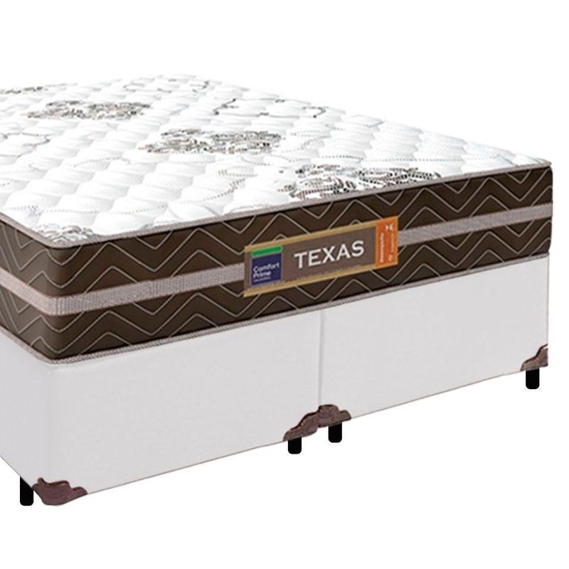 ColchõesCamas BoxCama Box Casal Bipartido Sintético + Colchão Molas Ensacadas Texas Colchões 138cm - Suporta Até 120kg Por Pessoa