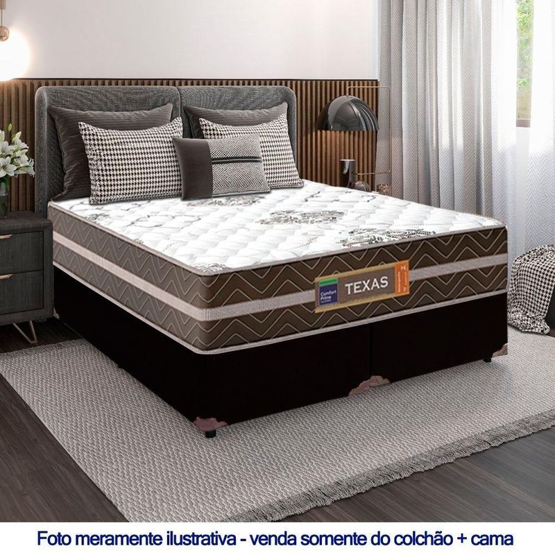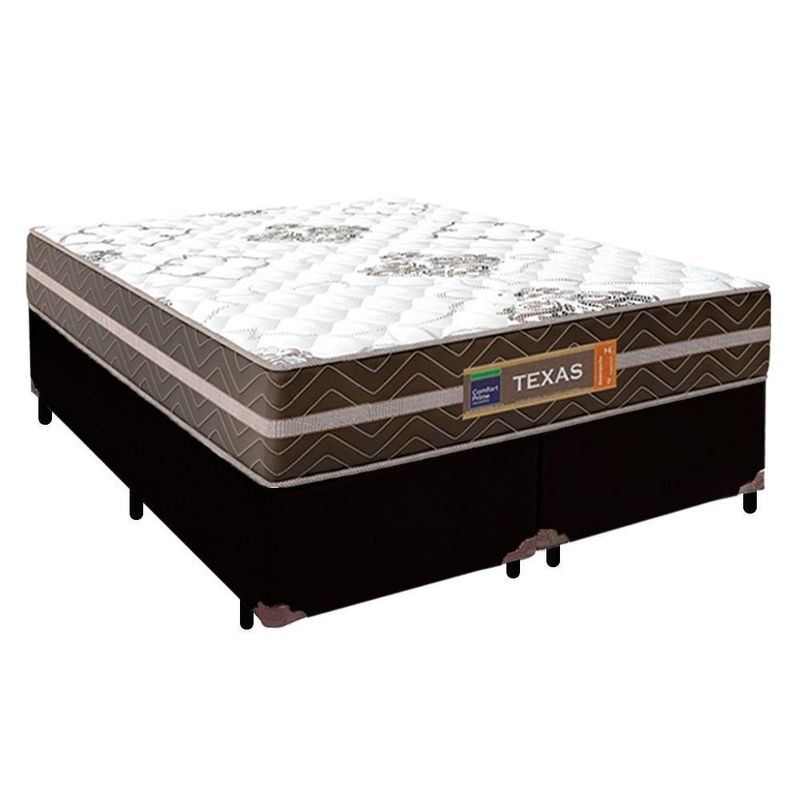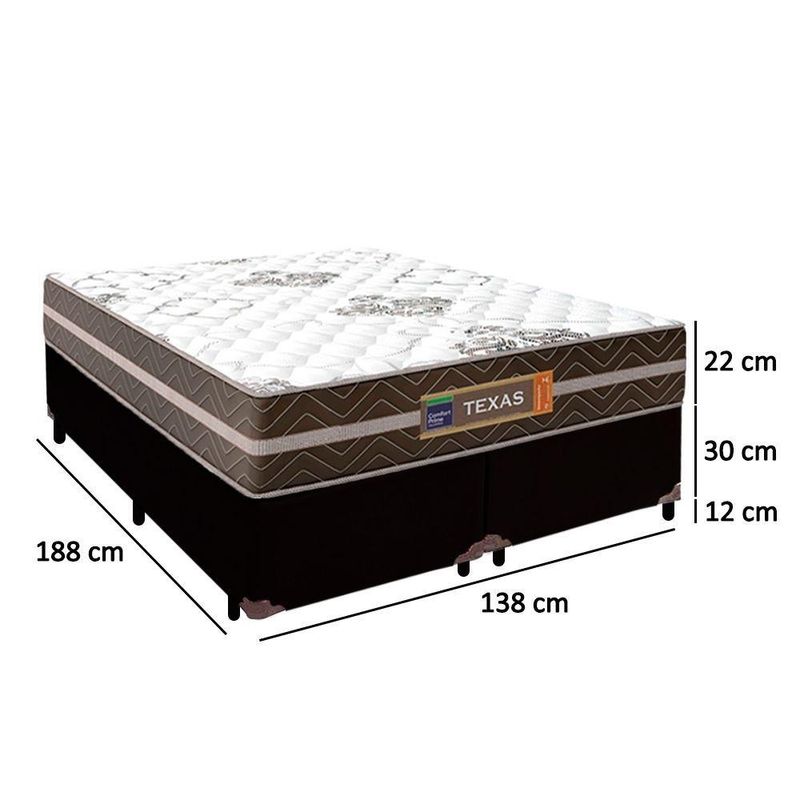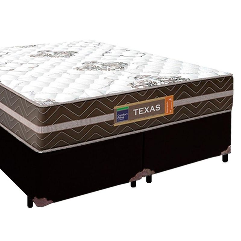 Cama Box Casal Bipartido Sintético + Colchão Molas Ensacadas Texas Colchões 138cm - Suporta Até 120kg Por Pessoa CA Cama Box Casal Sintético + Colchão Molas Ensacadas Texas 138x188x64cmÉ uma combinação que oferece uma solução completa, agilidade e praticidade na aquisição da sua cama. O Colchão Casal Texas Molas Ensacadas foi criado pensando em você. Possui molas ensacadas em sua composição, o que proporciona um conforto único. A capacidade de suporte é de até 120kg por pessoa, garantindo conforto durante o sono, além de promover um melhor apoio e qualidade de vida.A Cama Box é a opção ideal para maior aproveitamento do quarto, pois oferece espaço extra e praticidade. Produto de alta durabilidade, resistente e excelente qualidade em acabamento, totalmente em suede, o que lhe confere elegância e sofisticação em qualquer ambiente.Características do Colchão:- Marca: Colchões- Marrom/Branco- Espuma: D26- Modelo: Texas- Tamanho: Casal- Tipo de Molas: Ensacadas- Revestimento Superior: Poliéster- Revestimento Lateral: Poliéster- Capacidade: 120kg por pessoas- Interior: Molas ensacadas, com espuma D26- Dimensões do colchão (largura x comprimento x altura): 138x188x22cmCaracterísticas do Box:- Estrutura Interna: Estrutura em madeira 100% de Reflorestamento- Marca: Cama- Estrutura Externa: Sintético- Tratamento : Sim- Tratamento : Sim- Saída de Ventilação: Não- Ortopédico: Não- Tecido Antiderrapante: Não- Suporta até (kg): 150 Kg- Necessita Montagem: Não- Dimensões do box (largura x comprimento x altura): 138x188x64cmDimensões do Produto:- Altura (Box + Colchão): 60cm- Largura: 138cm- Comprimento: 188cm- Altura dos Pés: 12cm*As cores do produto podem variar de acordo com o monitor, a iluminação do ambiente e a sua percepção visual.**Confira as dimensões do produto e certifique-se de que passará normalmente por supostos elevadores, portas, escadas e/ou corredores de sua residência.**Verifique nossas politicas internas para que não haja nenhuma dúvida no processo de ao finalizar a compra, pois não fazemos a montagem e desmontagem do produto e/ou portas e janelas, pela escada ou içamento pelo lado de fora do prédio.*