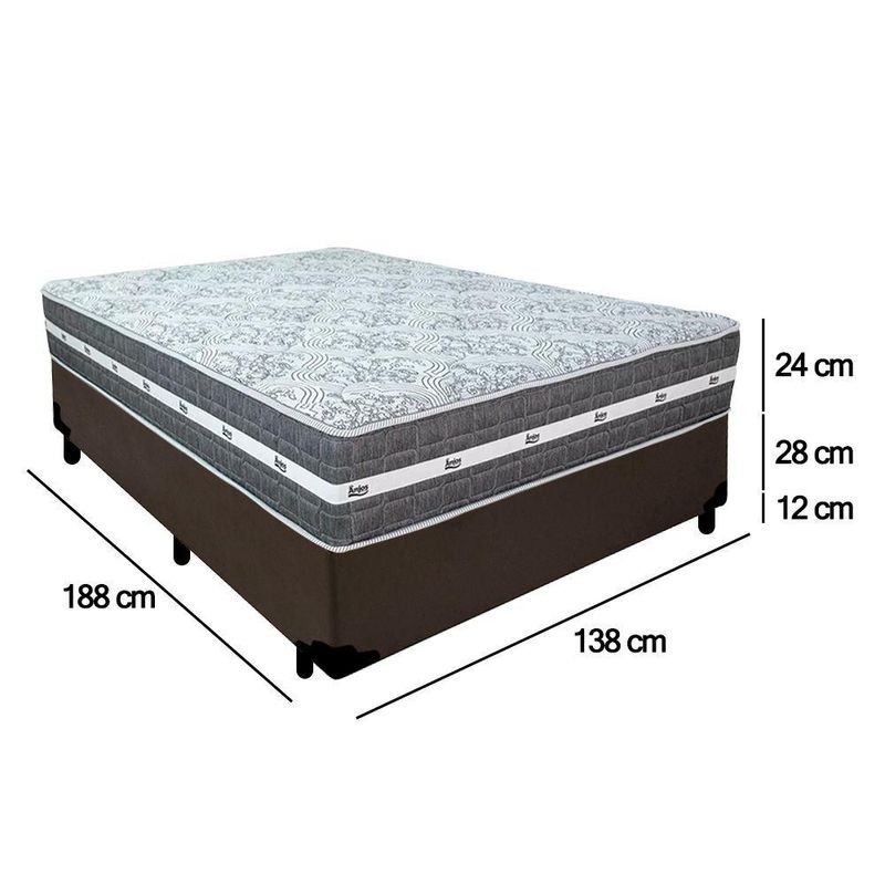 Cama Box Casal Sintético + Colchão Black Graphite Molas Ensacadas 138x188x64cm Marrom