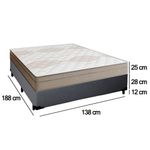 Cama Box Casal Sintético + Colchão De Molas Ensacadas Portobel Ipanema - 138x188x65cm CinzaCama Box Casal Sintético + Colchão de Molas Ensacadas Portobel Ipanema - 138x188x65cmTransforme o seu quarto com a Cama Box Casal Sintético SerenePrime, que alia sofisticação e conforto. Com um acabamento em tecido sintético e elegante, esta cama box proporciona um visual moderno e aconchegante, perfeito para qualquer ambiente.Desfrute de noites mais confortáveis com o Colchão Portobel, projetado para proporcionar um sono reparador com a combinação perfeita de suporte e maciez. Suas molas ensacadas de 10 cm são individualmente embaladas, permitindo um melhor ajuste ao corpo e reduzindo a transmissão de movimento, ideal para quem divide a cama. A espuma D26 oferece a densidade ideal para o suporte sem perder o conforto, além de ser altamente resistente, garantindo durabilidade ao longo dos anos.O núcleo em EPS de 11 cm de altura reforça a estrutura do colchão, proporcionando firmeza extra e sustentação. O tampo em malha 100% poliéster oferece uma sensação agradável ao toque e é altamente respirável, mantendo uma temperatura agradável durante o sono. A faixa lateral em suede não só eleva o estilo do colchão, como também contribui para sua resistência e acabamento refinado, combinando perfeitamente com qualquer ambiente.Este colchão é a escolha perfeita para quem busca noites tranquilas e renovadoras. Suas dimensões de 138 cm de largura, 25 cm de altura e 188 cm de profundidade são ideais para quem deseja um colchão de tamanho confortável e com excelente suporte. Invista em qualidade e durabilidade com o Colchão Portobel, feito para transformar suas noites de descanso.Especificações Técnicas Colchão:Marca: PortobelModelo: Molas Ensacadas IpanemaComposição: Molas, Espuma D26, EPS de 11cm de altura.Proteções: Antiácaro - AntialérgicoTecido de Revestimento: Faixa em suedeForração Revestimento: Tampo de malha 100% poliesterDimensões do Colchão (largura x comprimeento x altura) Casal: 138x188x25cmEspecificações Técnicas Base Box:Marca: Home QueenMaterial: madeira tratadaPeso máximo recomendado: até 120Kg (por pessoa)Revestimento: material (tecido) sintéticoAltura da base: 28cmAltura dos pés: 12cmComprimento: 188cmLargura: 138cm*As cores do produto podem variar de acordo com o monitor, a iluminação do ambiente e a sua percepção visual.*Confira as dimensões do produto e certifique-se de que passará normalmente por supostos elevadores, portas, escadas e/ou corredores de sua residência.*Verifique nossas politicas internas para que não haja nenhuma dúvida no processo de entrega ao finalizar a compra, pois não fazemos a montagem e desmontagem do produto e não nos responsabilizamos por subir escadas, corredores e elevadores ou transporte por içamento pelo lado de fora do prédio.