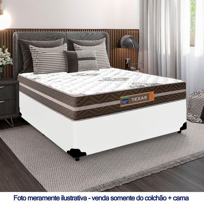 Cama Box Casal Sintético + Colchão Molas Ensacadas Texas Prime Colchões 138cm Branco - Suporta Até 120 Kg Por PessoaA Cama Box Casal Sintético + Colchão Molas Ensacadas Texas 138x188x64cmÉ uma combinação que oferece uma solução completa, agilidade e praticidade na aquisição da sua cama. O Colchão Casal Texas Molas Ensacadas foi criado pensando em você. Possui molas ensacadas em sua composição, o que proporciona um conforto único. A capacidade de suporte é de até 120kg por pessoa, garantindo conforto durante o sono, além de promover um melhor apoio e qualidade de vida.A Cama Box é a opção ideal para maior aproveitamento do quarto, pois oferece espaço extra e praticidade. Produto de alta durabilidade, resistente e excelente qualidade em acabamento, totalmente em suede, o que lhe confere elegância e sofisticação em qualquer ambiente.Características do Colchão:- Marca: Prime Colchões- Cor: Marrom/Branco- Espuma: D26- Modelo: Texas- Tamanho: Casal- Tipo de Molas: Ensacadas- Revestimento Superior: Poliéster- Revestimento Lateral: Poliéster- Capacidade: 120kg por pessoas- Interior: Molas ensacadas, com espuma D26- Dimensões do colchão (largura x comprimento x altura): 138x188x22cmCaracterísticas do Box:- Estrutura Interna: Estrutura em madeira 100% de Reflorestamento- Marca: Mega Cama- Estrutura Externa: Sintético- Tratamento Antiácaro: Sim- Tratamento Antialérgico: Sim- Saída de Ventilação: Não- Ortopédico: Não- Tecido Antiderrapante: Não- Suporta até (kg): 150 Kg- Necessita Montagem: Não- Dimensões do box (largura x comprimento x altura): 138x188x64cmDimensões do Produto:- Altura (Box + Colchão): 60cm- Largura: 138cm- Comprimento: 188cm- Altura dos Pés: 12cm*As cores do produto podem variar de acordo com o monitor, a iluminação do ambiente e a sua percepção visual.**Confira as dimensões do produto e certifique-se de que passará normalmente por supostos elevadores, portas, escadas e/ou corredores de sua residência.**Verifique nossas politicas internas para que não haja nenhuma dúvida no processo de entrega ao finalizar a compra, pois não fazemos a montagem e desmontagem do produto e/ou portas e janelas, transporte pela escada ou içamento pelo lado de fora do prédio.*