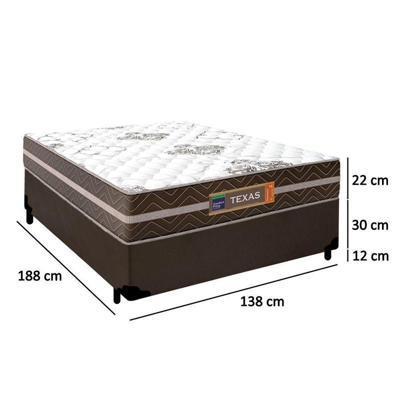Cama Box Casal Sintético + Colchão Molas Ensacadas Texas Prime Colchões 138cm - Suporta Até 120 Kg Por Pessoa Cor:marromA Cama Box Casal Sintético + Colchão Molas Ensacadas Texas 138x188x64cmÉ uma combinação que oferece uma solução completa, agilidade e praticidade na aquisição da sua cama. O Colchão Casal Texas Molas Ensacadas foi criado pensando em você. Possui molas ensacadas em sua composição, o que proporciona um conforto único. A capacidade de suporte é de até 120kg por pessoa, garantindo conforto durante o sono, além de promover um melhor apoio e qualidade de vida.A Cama Box é a opção ideal para maior aproveitamento do quarto, pois oferece espaço extra e praticidade. Produto de alta durabilidade, resistente e excelente qualidade em acabamento, totalmente em suede, o que lhe confere elegância e sofisticação em qualquer ambiente.Características do Colchão:- Marca: Prime Colchões- Cor: Marrom/Branco- Espuma: D26- Modelo: Texas- Tamanho: Casal- Tipo de Molas: Ensacadas- Revestimento Superior: Poliéster- Revestimento Lateral: Poliéster- Capacidade: 120kg por pessoas- Interior: Molas ensacadas, com espuma D26- Dimensões do colchão (largura x comprimento x altura): 138x188x22cmCaracterísticas do Box:- Estrutura Interna: Estrutura em madeira 100% de Reflorestamento- Marca: Mega Cama- Estrutura Externa: Sintético- Tratamento Antiácaro: Sim- Tratamento Antialérgico: Sim- Saída de Ventilação: Não- Ortopédico: Não- Tecido Antiderrapante: Não- Suporta até (kg): 150 Kg- Necessita Montagem: Não- Dimensões do box (largura x comprimento x altura): 138x188x64cmDimensões do Produto:- Altura (Box + Colchão): 60cm- Largura: 138cm- Comprimento: 188cm- Altura dos Pés: 12cm*As cores do produto podem variar de acordo com o monitor, a iluminação do ambiente e a sua percepção visual.**Confira as dimensões do produto e certifique-se de que passará normalmente por supostos elevadores, portas, escadas e/ou corredores de sua residência.**Verifique nossas politicas internas para que não haja nenhuma dúvida no processo de entrega ao finalizar a compra, pois não fazemos a montagem e desmontagem do produto e/ou portas e janelas, transporte pela escada ou içamento pelo lado de fora do prédio.*