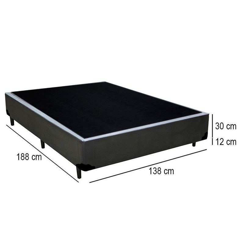 Cama Box Casal Sintético Mega Cama Cinza 138x188x42cmCama Box Casal Sintético Mega Cama Cinza 138x188x42cmA Base Box é confeccionada com estrutura de madeira 100% reflorestada com tratamentos Antialérgico e Antiácaro, proporcionando alta durabilidade e resistência do produto. Possui excelente acabamento dando um ar de sofisticação e requinte.As cores do produto podem variar de acordo com o monitor, a iluminação do ambiente e a sua percepção visual.Confira as dimensões do produto e certifique-se de que passará normalmente por supostos elevadores, portas, escadas e/ou corredores de sua residência.Especificações Técnicas Base Box:Marca: Mega CamaMaterial: Estrutura em madeira 100% de reflorestamentoProteções: Antialérgico - AntiácaroPeso máximo Recomendado: até 150kgRevestimento: Material (tecido) SintéticoAltura da base: 30cmPossui Pés: SimAltura dos pés: 12cmDimensões do produto:Altura Total (base + pés): 42cmQuantidade de Pés: 7 pésLargura: 138cmComprimento: 188cmAltura dos Pés: 12 cm.*As cores do produto podem variar de acordo com o monitor, a iluminação do ambiente e a sua percepção visual.*Confira as dimensões do produto e certifique-se de que passará normalmente por supostos elevadores, portas, escadas e/ou corredores de sua residência.*Verifique nossas politicas internas para que não haja nenhuma dúvida no processo de entrega ao finalizar a compra, pois não fazemos a montagem e desmontagem do produto e não nos responsabilizamos por subir escadas, corredores e elevadores ou transporte por içamento pelo lado de fora do prédio.