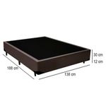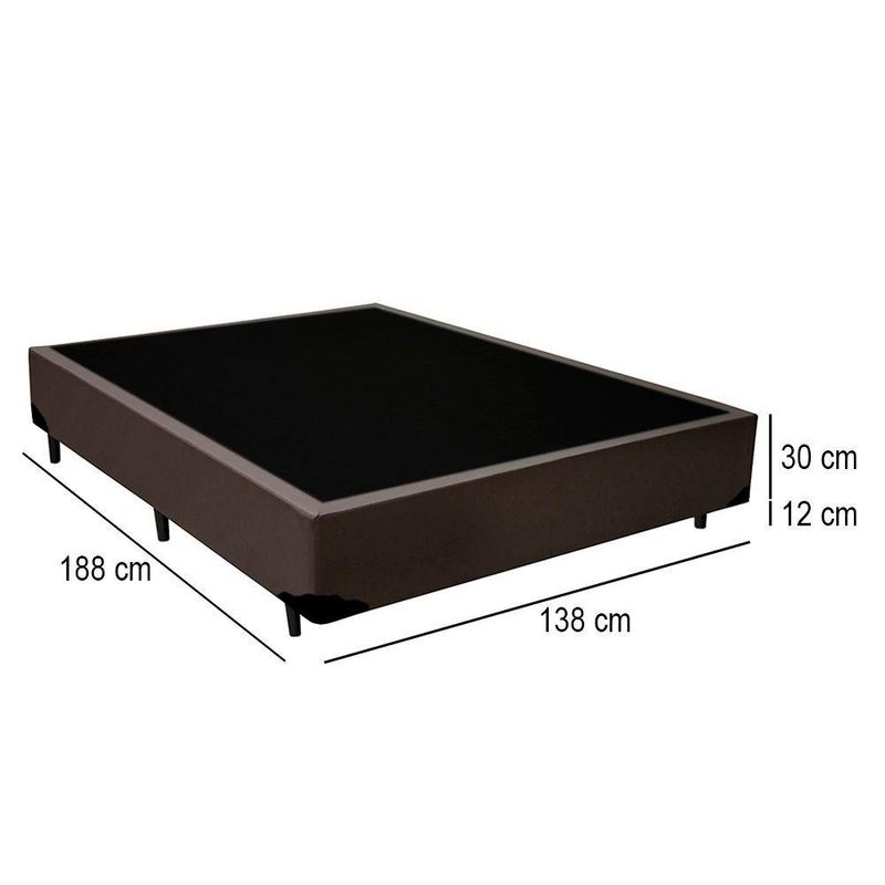 Cama Box Casal Sintético Mega Cama Marrom 138x188x42cmCama Box Casal Sintético Mega Cama Marrom 138x188x42cmA Base Box é confeccionada com estrutura de madeira 100% reflorestada com tratamentos Antialérgico e Antiácaro, proporcionando alta durabilidade e resistência do produto. Possui excelente acabamento dando um ar de sofisticação e requinte.As cores do produto podem variar de acordo com o monitor, a iluminação do ambiente e a sua percepção visual.Confira as dimensões do produto e certifique-se de que passará normalmente por supostos elevadores, portas, escadas e/ou corredores de sua residência.Especificações Técnicas Base Box:Marca: Mega CamaMaterial: Estrutura em madeira 100% de reflorestamentoProteções: Antialérgico - AntiácaroPeso máximo Recomendado: até 150kgRevestimento: Material (tecido) SintéticoAltura da base: 30cmPossui Pés: SimAltura dos pés: 12cmDimensões do produto:Altura Total (base + pés): 42cmQuantidade de Pés: 7 pésLargura: 138cmComprimento: 188cmAltura dos Pés: 12 cm.*As cores do produto podem variar de acordo com o monitor, a iluminação do ambiente e a sua percepção visual.*Confira as dimensões do produto e certifique-se de que passará normalmente por supostos elevadores, portas, escadas e/ou corredores de sua residência.*Verifique nossas politicas internas para que não haja nenhuma dúvida no processo de entrega ao finalizar a compra, pois não fazemos a montagem e desmontagem do produto e não nos responsabilizamos por subir escadas, corredores e elevadores ou transporte por içamento pelo lado de fora do prédio.