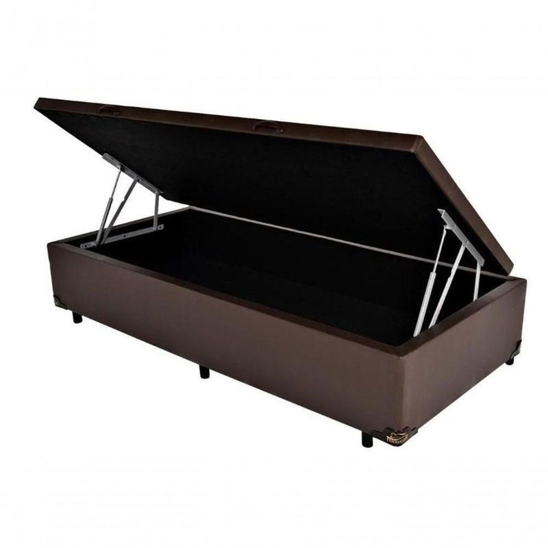 Cama Box Com Baú Solteiro 88x188 Marrom SintéticoBaú SolteiroOrganização e conforto no mesmo espaço! A Cama Box Baú Solteiro conta com amplo compartimento interno e abertura fácil para guardar tudo o que você precisa.A Cama Box Baú Solteiro é a escolha ideal para quem busca conforto, praticidade e aproveitamento inteligente do espaço. Com um amplo compartimento interno, ela é perfeita para guardar roupas de cama, travesseiros, cobertores e objetos pessoais, mantendo o quarto sempre organizado.Sua estrutura é fabricada em madeira de reflorestamento tratada, garantindo resistência e longa durabilidade. O sistema de abertura é articulado com pistões a gás, que facilita o manuseio do baú de forma leve e segura.Baú espaçoso para armazenamentoEstrutura reforçada e acabamento PremiumIdeal para quartos compactos e organização práticaInformações Importantes:Travesseiros e cabeceiras não inclusos.Não realizamos a subida do produto por escadas, elevadores ou locais de difícil acesso ? a entrega é feita até a porta térrea. O transporte interno até o local de uso é de responsabilidade do comprador.Ficha TécnicaModelo: Cama Box Baú SolteiroTipo: Base com compartimento interno de armazenamentoDimensões aproximadas (C x L x A): 188 cm x 88 cm x 42 cmPeso aproximado: 35 kgEstrutura da Base: Madeira de reflorestamento tratadaRevestimento: Tecido poliéster de alta resistênciaSistema de abertura: Articulado com pistões a gásCor disponível: marromCapacidade de peso: Até 150 kgGarantia: 3 meses contra defeitos de fabricação