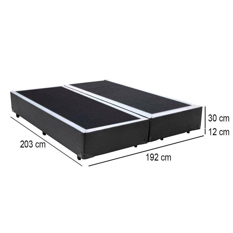 Cama Box King Bipartido Sintético Mega Cama Cinza 192x203x42cmCama Box King Bipartido Sintético Mega Cama Cinza 192x203x42cmCama Box Bipartida é produzida com os melhores materiais, proporcionando uma alta resistência e durabilidade prolongada.Proporcionando praticidade e conforto, tornando-se uma peça que pode ser combinada com a decoração de seu quarto deixando-o moderno e sofisticado.**As cores do produto podem variar de acordo com o monitor, a iluminação do ambiente e a sua percepção visual.**Características do Box:- Estrutura Interna: Estrutura em madeira 100% de Reflorestamento- Estrutura Externa: Sintético- Tratamento Antiácaro: Sim- Tratamento Antialérgico: Sim- Saida de Ventilação: Sim- Suporta até (kg): 150 Kg- Necessita Montagem: Não- Altura: 30cm- Largura: 193cm- Largura cada box: 96cm- Profundidade: 203cm- Possui Pés: Sim- Altura dos Pés: 12cmVerifique nossas politicas internas para que não haja nenhuma dúvida no processo de entrega ao finalizar a compra, pois não fazemos a montagem e desmontagem do produto e/ou portas e janelas, transporte pela escada ou içamento pelo lado de fora do prédio.**Confira as dimensões do produto e certifique-se de que passará normalmente por supostos elevadores, portas, escadas e/ou corredores de sua residência**
