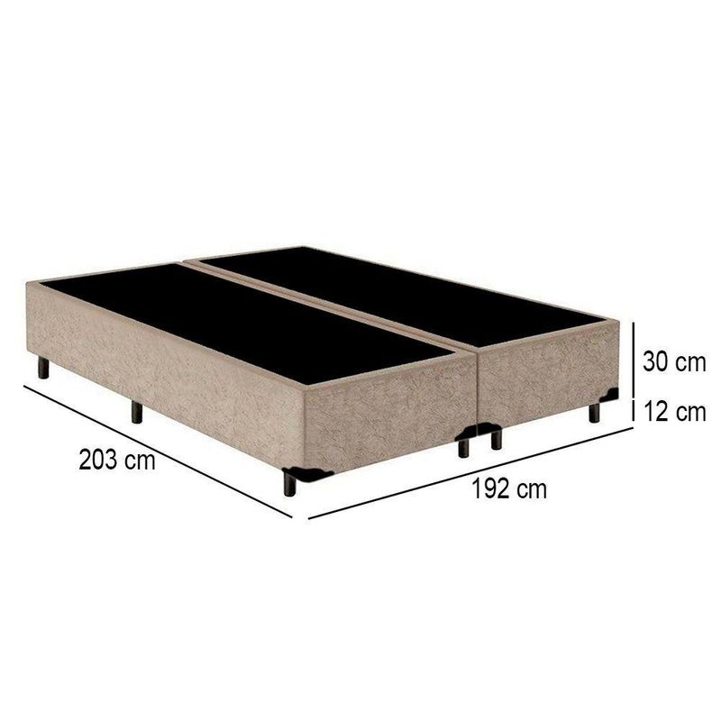 Cama Box King Bipartido Suede Mega Cama Bege 192x203x42cmCama Box King Bipartido Suede Mega Cama Bege 192x203x42cmCama Box Bipartida é produzida com os melhores materiais, proporcionando uma alta resistência e durabilidade prolongada.Proporcionando praticidade e conforto, tornando-se uma peça que pode ser combinada com a decoração de seu quarto deixando-o moderno e sofisticado.**As cores do produto podem variar de acordo com o monitor, a iluminação do ambiente e a sua percepção visual.**Características do Box:- Estrutura Interna: Estrutura em madeira 100% de Reflorestamento- Estrutura Externa: Suede- Tratamento Antiácaro: Sim- Tratamento Antialérgico: Sim- Saida de Ventilação: Sim- Suporta até (kg): 150 Kg- Necessita Montagem: Não- Altura: 30cm- Largura: 193cm- Largura cada box: 96cm- Profundidade: 203cm- Possui Pés: Sim- Altura dos Pés: 12cmVerifique nossas politicas internas para que não haja nenhuma dúvida no processo de entrega ao finalizar a compra, pois não fazemos a montagem e desmontagem do produto e/ou portas e janelas, transporte pela escada ou içamento pelo lado de fora do prédio.**Confira as dimensões do produto e certifique-se de que passará normalmente por supostos elevadores, portas, escadas e/ou corredores de sua residência**