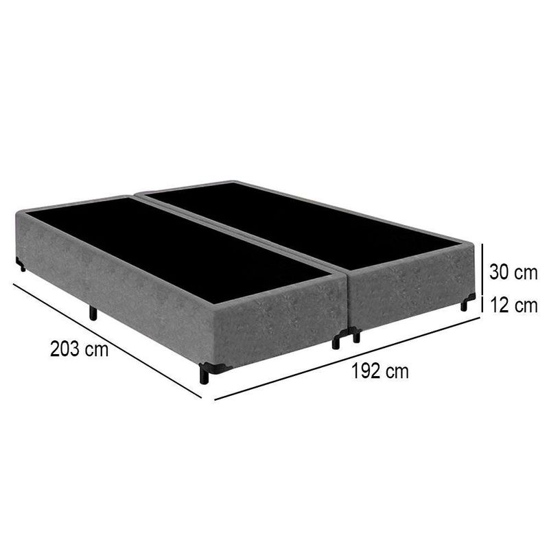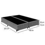 Cama Box King Bipartido Suede Mega Cama Cinza 192x203x42cmCama Box King Bipartido Suede Mega Cama Cinza 192x203x42cmCama Box Bipartida é produzida com os melhores materiais, proporcionando uma alta resistência e durabilidade prolongada.Proporcionando praticidade e conforto, tornando-se uma peça que pode ser combinada com a decoração de seu quarto deixando-o moderno e sofisticado.**As cores do produto podem variar de acordo com o monitor, a iluminação do ambiente e a sua percepção visual.**Características do Box:- Estrutura Interna: Estrutura em madeira 100% de Reflorestamento- Estrutura Externa: Suede- Tratamento Antiácaro: Sim- Tratamento Antialérgico: Sim- Saida de Ventilação: Sim- Suporta até (kg): 150 Kg- Necessita Montagem: Não- Altura: 30cm- Largura: 193cm- Largura cada box: 96cm- Profundidade: 203cm- Possui Pés: Sim- Altura dos Pés: 12cmVerifique nossas politicas internas para que não haja nenhuma dúvida no processo de entrega ao finalizar a compra, pois não fazemos a montagem e desmontagem do produto e/ou portas e janelas, transporte pela escada ou içamento pelo lado de fora do prédio.**Confira as dimensões do produto e certifique-se de que passará normalmente por supostos elevadores, portas, escadas e/ou corredores de sua residência**