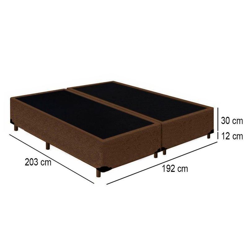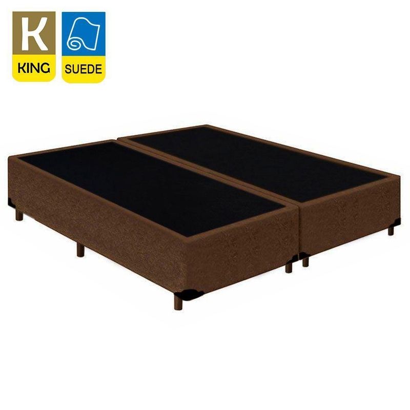 Cama Box King Bipartido Suede Mega Cama Marrom 192x203x42cmCama Box King Bipartido Suede Mega Cama Marrom 192x203x42cmCama Box Bipartida é produzida com os melhores materiais, proporcionando uma alta resistência e durabilidade prolongada.Proporcionando praticidade e conforto, tornando-se uma peça que pode ser combinada com a decoração de seu quarto deixando-o moderno e sofisticado.**As cores do produto podem variar de acordo com o monitor, a iluminação do ambiente e a sua percepção visual.**Características do Box:- Estrutura Interna: Estrutura em madeira 100% de Reflorestamento- Estrutura Externa: Suede- Tratamento Antiácaro: Sim- Tratamento Antialérgico: Sim- Saida de Ventilação: Sim- Suporta até (kg): 150 Kg- Necessita Montagem: Não- Altura: 30cm- Largura: 193cm- Largura cada box: 96cm- Profundidade: 203cm- Possui Pés: Sim- Altura dos Pés: 12cmVerifique nossas politicas internas para que não haja nenhuma dúvida no processo de entrega ao finalizar a compra, pois não fazemos a montagem e desmontagem do produto e/ou portas e janelas, transporte pela escada ou içamento pelo lado de fora do prédio.**Confira as dimensões do produto e certifique-se de que passará normalmente por supostos elevadores, portas, escadas e/ou corredores de sua residência**