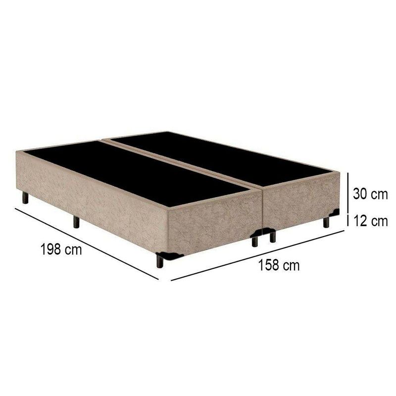 Cama Box Queen Bipartido Suede Mega Cama Bege 158x198x42cmCama Box Queen Bipartido Suede Mega Cama Bege 158x198x42cmA Base Box é confeccionada com estrutura de madeira 100% reflorestada com tratamentos Antialérgico e Antiácaro, proporcionando alta durabilidade e resistência do produto. Possui excelente acabamento dando um ar de sofisticação e requinte.Especificações Técnicas Base Box:Material: Estrutura blindada em madeira 100% de ReflorestamentoProteções: Antialérgico - AntiácaroPeso máximo Recomendado: até 150kgRevestimento: Material (tecido) SuedeAltura da base: 30cmAltura dos pés: 12cmDimensões do produto:Altura Total (base + pés): 42cmLargura: 158cm (Duas bases com 79cm cada uma)Comprimento: 198cm*As cores do produto podem variar de acordo com o monitor, a iluminação do ambiente e a sua percepção visual.*Confira as dimensões do produto e certifique-se de que passará normalmente por supostos elevadores, portas, escadas e/ou corredores de sua residência.*Verifique nossas politicas internas para que não haja nenhuma dúvida no processo de entrega ao finalizar a compra, pois não fazemos a montagem e desmontagem do produto e não nos responsabilizamos por subir escadas, corredores e elevadores ou transporte por içamento pelo lado de fora do prédio.