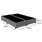 Cama Box Queen Bipartido Suede Mega Cama Cinza 158x198x42cmCama Box Queen Bipartido Suede Mega Cama Cinza 158x198x42cmA Base Box é confeccionada com estrutura de madeira 100% reflorestada com tratamentos Antialérgico e Antiácaro, proporcionando alta durabilidade e resistência do produto. Possui excelente acabamento dando um ar de sofisticação e requinte.Especificações Técnicas Base Box:Material: Estrutura blindada em madeira 100% de ReflorestamentoProteções: Antialérgico - AntiácaroPeso máximo Recomendado: até 150kgRevestimento: Material (tecido) SuedeAltura da base: 30cmAltura dos pés: 12cmDimensões do produto:Altura Total (base + pés): 42cmLargura: 158cm (Duas bases com 79cm cada uma)Comprimento: 198cm*As cores do produto podem variar de acordo com o monitor, a iluminação do ambiente e a sua percepção visual.*Confira as dimensões do produto e certifique-se de que passará normalmente por supostos elevadores, portas, escadas e/ou corredores de sua residência.*Verifique nossas politicas internas para que não haja nenhuma dúvida no processo de entrega ao finalizar a compra, pois não fazemos a montagem e desmontagem do produto e não nos responsabilizamos por subir escadas, corredores e elevadores ou transporte por içamento pelo lado de fora do prédio.