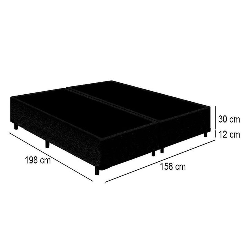 Cama Box Queen Bipartido Suede Mega Cama Preto 158x198x42cmCama Box Queen Bipartido Suede Mega Cama Preto 158x198x42cmA Base Box é confeccionada com estrutura de madeira 100% reflorestada com tratamentos Antialérgico e Antiácaro, proporcionando alta durabilidade e resistência do produto. Possui excelente acabamento dando um ar de sofisticação e requinte.Especificações Técnicas Base Box:Material: Estrutura blindada em madeira 100% de ReflorestamentoProteções: Antialérgico - AntiácaroPeso máximo Recomendado: até 150kgRevestimento: Material (tecido) SuedeAltura da base: 30cmAltura dos pés: 12cmDimensões do produto:Altura Total (base + pés): 42cmLargura: 158cm (Duas bases com 79cm cada uma)Comprimento: 198cm*As cores do produto podem variar de acordo com o monitor, a iluminação do ambiente e a sua percepção visual.*Confira as dimensões do produto e certifique-se de que passará normalmente por supostos elevadores, portas, escadas e/ou corredores de sua residência.*Verifique nossas politicas internas para que não haja nenhuma dúvida no processo de entrega ao finalizar a compra, pois não fazemos a montagem e desmontagem do produto e não nos responsabilizamos por subir escadas, corredores e elevadores ou transporte por içamento pelo lado de fora do prédio.