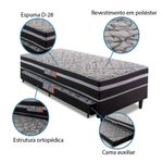Cama Box Solteiro Com Cama Auxiliar Aspen 88x188x41cm Cinza/preto CinzaA cama box com cama auxiliar Aspen é o conjunto ideal pra quem precisa de conforto e praticidade. Feita com materiais de alta qualidade, sua espuma extra firme se adapta aos contornos do corpo, promovendo uma melhor distribuição de peso sobre o colchão. Revestido com um tecido antiácaro e antifúngico, garantindo uma maior proteção e durabilidade. Ela acompanha uma cama auxiliar com rodízio, facilitando o uso no dia a dia. Com ela, suas noites de sono nunca mais serão as mesmas.MEDIDAS:[ A ] = 41 cm[ L ] = 88 cm[ P ] = 188 cmMODELO: Cama Box Solteiro Conjugada 203cmMARCA DO COLCHÃO: HellenMARCA DO BOX: HellenTECIDO DO BOX: SuedePESO DO BOX: 20kgPÉS : 12 cmMATERIAL: Espuma D20SUPORTA: Até 70kgMATELASSE: PoliésterCOR: Branco / PretoPESO DO COLCHÃO: 4,6kgITENS INCLUSOS: 1 colchão, 1 box e 1 colchão auxiliarGARANTIA: 03 MesesA ESPLANADA MÓVEIS se responsabilizará pela dos produtos adquiridos até a porta de entrada ou portaria do endereço indicado. Esclarecemos que não nos responsabilizamos por montagens, desmontagens e instalações, ficando assim sob responsabilidade do cliente. Confira as dimensões do produto no momento da compra e certifique-se de que o item passará normalmente por elevadores, portas, escadas e/ou corredores, evitando assim futuros desagrados ou imprevistos com a . Foto ilustrativa. A tonalidade de cor pode variar entre peças diferentes. Além disso, a percepção das cores do produto pode ser um pouco diferente da mostrada na foto do anúncio em função da luminosidade do ambiente, calibração do monitor ou aparelho para visualização da foto. MEDIDAS: [ A ] = 41 cm [ L ] = 88 cm [ P ] = 188 cm | MODELO: Cama Box Solteiro Conjugada 203cm | MARCA DO COLCHÃO: Hellen | MARCA DO BOX: Hellen | TECIDO DO BOX: Suede | PESO DO BOX: 20kg | PÉS: 12 cm | MATERIAL: Espuma D20 | SUPORTA: Até 70kg | MATELASSE: Poliéster | COR: Branco / Preto | PESO DO COLCHÃO: 4,6kg | ITENS INCLUSOS: 1 colchão, 1 box e 1 colchão auxiliar | GARANTIA: 03 Meses | OBSERVAÇÃO: A ESPLANADA MÓVEIS se responsabilizará pela dos produtos adquiridos até a porta de entrada ou portaria do endereço indicado. Esclarecemos que não nos responsabilizamos por montagens, desmontagens e instalações, ficando assim sob responsabilidade d | TIPO DE ENCHIMENTO: Espuma D20 | TAMANHO: 188cm Cor: Cinza