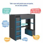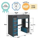 Cama Infantil Alta Multifuncional Office De Solteiro Com Armário, Escrivaninha, Cabideiro E Prateleira GrafitePRODUTO NOVO DIRETO DE FÁBRICANOTA FISCALGARANTIA DE 6 MESESA Cama Infantil Alta Multifuncional Office de Solteiro com Armário, Escrivaninha, Cabideiro e Prateleira Menino Menina da Completa Móveis traz um design moderno para o quarto do seu filho. Com escada lateral, praticidade e segurança para a subida e descida. Produto versátil possui estação de estudos com escrivaninha, prateleira e balcão para guardar acessórios, materiais escolares e tudo mais, além do armário, também, possui guarda-roupas acoplado na parte lateral.Produto 100% MDP com suportes dos lastros em madeira maciça e lastros em MDFDIMENSÕES DA CAMA MONTADA:Altura: 183cmLargura: 95,8cmComprimento: 196,2cmPeso suportado: 60KgCORES:Branco com Carvalho AraguaiaGrafite com Azul SecretoPOSSIBILITA MONTAGEM DIREITA OU ESQUERDA.PRODUTO ENTREGUE DESMONTADO.MONTAGEM NÃO INCLUSA.NÃO ACOMPANHA COLCHÃO.COLCHÃO INDICADO (LXPXA): 188x78x12cm.Produto composto por 4 volume.Acompanha manual de montagem.Peso total do produto: 143Kg.Altura do estrado até o chão: 155cm.Não possui rodízios.Não possui gaveta.Não possui chave.Não possui espelho.Possui puxadores plásticos embutidos.Possui 02 portas com dobradiça metálica e 02 portas deslizantes.Possui 01 cabideiro de madeira com revestimento plástico.DICAS DE MONTAGEMForre o chão com o próprio papelão.Separe as peças e acessórios de acordo com o manual.Confira se todas as peças foram recebidas corretamente.Use um pano levemente umedecido com água, seguido de pano seco. Não utilize produtos químicos ou abrasivos.Marca: Completa Móveis | Modelo: Cama Infantil Elevada Multifuncional | Material: MDP | Acabamento: Fosco | Tamanho da Cama: Solteiro | Comprimento (cm): 196,2 | Largura (cm): 95,8 | Altura (cm): 183 | Peso do Produto (Kg): 143 | Quantidade de Volume: 4 | Peso Suportado (Kg): 60 | Material do Estrado: Suportes dos lastros em madeira maciça e lastros em MDF | Altura do Estrado até o Chão (cm): 155 | Colchão Indicado (LxPxA) (cm): 188x78x12 | Acompanha Colchão: Não | Com Esacada: Sim | Possui Rodízios: Não | Possui Gaveta: Não | Possui Chave: Não | Possui Espelho: Não | Quantidade de Portas: 4 | Material da Dobradiça: Metálica | Tipo de Abertura das Portas: Guarda-Roupa: Giro; Balcão: Deslizante | Possui Puxador: Sim | Material do Puxador: Plástico | Possui Prateleira: Sim | Tipo de Prateleira: Fixa | Possui Cabideiro: Sim | Quantidade de Cabideiro: 1 | Material do Cabideiro: Madeira com Revestimento Plástico | Peso Suportado por Cabideiro (Kg): 5 | Necessita Montagem: Sim | Nível de Dificuldade da Montagem: Médio | Sistema de Montagem: Sistema de montagem via parafusos, cavilhas e sistema minifix | Quantidade de Item: 1 | Duração da Garantia: 6 Meses | País de Origem: Brasil | Tipo de Garantia: Garantia do Fabricante | Dimensão (AxLxC) cm: 183x95,8x196,2 | Baterias Necessárias: Não | Certificação de Teste Externo: Não Possui | Componentes Incluídos: Manual de Instalação | Número da Peça: BI030 | Principal Característica do Produto 01: Cama Infantil Elevada Multifuncional de Solteiro | Principal Característica do Produto 02: Cama Multifuncional com Armário, Escrivaninha, Cabideiro e Prateleira | Principal Característica do Produto 03: Cama Multifuncional com Guarda-Roupas | Frágil: Não | Inclui Manual de Montagem: Sim | Tipo da Cama: Cama Infantil Alta Multifuncional Office | Cor: Grafite