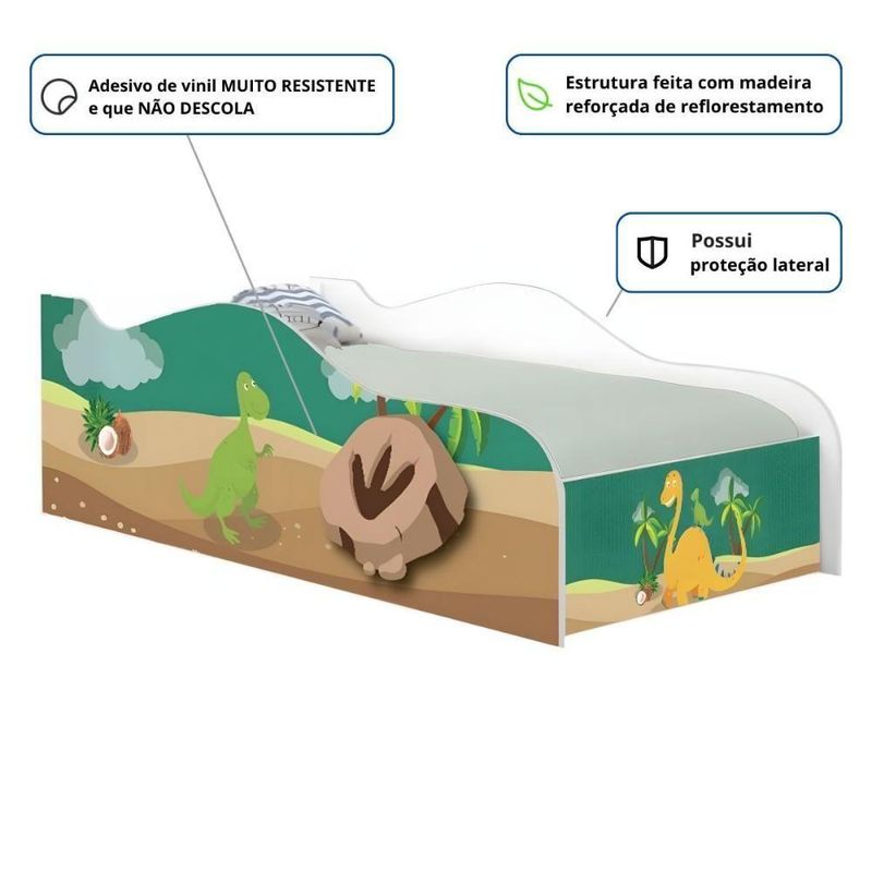 Cama Infantil Glow DinossaurosA Cama Carro Infantil conta com adesivagem nos painéis, com design moderno e direcionado para o conforto, bem-estar e segurança da criança, conferindo um ambiente alegre, colorido e divertido.Bordas arredondadas evitando riscos de acidentes, adesivos em vinil de alta qualidade e resistência.Produzida em 100% em MDFPESO SUPORTADO: 40 KGINDICADO COLCHÃO DE 12X88X188TAMANHO DA CAMA: MINI CAMA INFANTIL PARA CRIANÇAS DE ATÉ 6 ANOS APROX.Dimensões da Cama:Altura: 45,5 cmLargura: 72,5 cmProfundidade: 157,5 cmInformações da Cama:Cor da Cama: BrancaTema do Adesivo: DinossauroMaterial Principal: MDFPeso Suportado: 40 KgAuxiliar:NãoAcompanha Colchão: NãoItens Inclusos:1 Cama InfantilManual de MontagemKit completo para montagem e manual de instruçõesGarantia:3 meses contra defeito de fabricaçãoInformações Adicionais:- Fotos meramente ilustrativas do produto no ambiente.- Os objetos que ambientam as fotos não acompanham o produto;- Verificar descrição e tamanho do produto antes da compra.- Avaliar a mercadoria no ato do recebimento e recusar em caso de divergência ou avarias.- Mantenha as informações de contato e endereço de entrega atualizados para entrarmos em contato caso necessário.- Limpar com flanela ou pano macio seco, não utilizar produtos abrasivos, desengordurantes, álcool ou solvente. Não expor o produto diretamente à luz solar e à umidade.* Sugerimos a contratação de um montador profissional para a montagem do produto. Não nos responsabilizamos por avarias causadas no ato da montagem.* Não nos responsabilizamos pela montagem e desmontagem do produto no ato da entrega e devolução, assim como os custos gerados nestas situações.* A transportadora entregará o produto no andar térreo do endereço de entrega.* Não nos responsabilizamos por subir escadas, corredores e elevadores ou transporte por guincho em apartamentos. DESCRIÇÃO DO TAMANHO: 45,5x72,5x157,5cm | PESO PRODUTO COM EMBALAGEM (KG): 22 | CONTEÚDO DA EMBALAGEM: 1-Cama Infantil | LARGURA PRODUTO COM EMBALAGEM (CM): 49 | PESO DO PRODUTO (KG): 22 | INSTRUÇÕES/CUIDADOS: Avaliar a mercadoria no ato do recebimento e recusar em caso de divergência ou avarias. Evitar de fazer a limpeza com produtos químicos e danosos ao produto | MATERIAL PARA FILTRO: Madeira | ALTURA DO PRODUTO COM EMBALAGEM (CM): 8 | COMPRIMENTO PRODUTO COM EMBALAGEM (CM): 159 | ALTURA DO PRODUTO (CM): 45,5 | LARGURA DO PRODUTO (CM): 72,5 | COMPRIMENTO DO PRODUTO (CM): 157,5 | MATERIAL PRINCIPAL: Madeira | TIPO DE CAMA: Padrão | COR PREDOMINANTE: Branco | POSSUI COLCHÃO: Não | GÊNERO: Unissex | PESO SUPORTADO (KG): 40 | ESTADO DE ORIGEM: SP | PRODUTO PRECISA DE MONTAGEM?: Sim | MARCA: Casah | PRODUTO: 1-Cama Infantil | CLASSIFICAÇÃO DA CAMA: Infantil | MODELO DE CAMA: Mini Cama | CORES DO PRODUTO (FILTRO DE CORES): Branco | QUANTIDADES DE CAIXAS DE EMBALAGEM: 1 | INCLUI MANUAL DE MONTAGEM: Sim