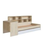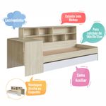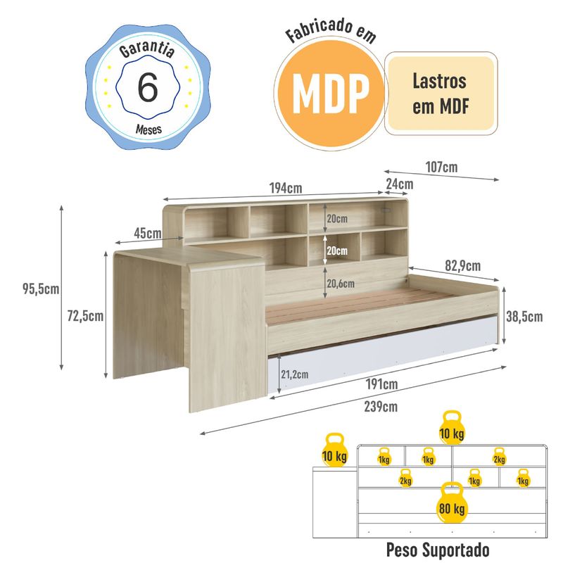 Deixe o quarto da sua criança ainda mais bonito, organizado e funcional com a Cama Infanto Juvenil com Escrivaninha, Estante e Cama Auxiliar da Completa Móveis. Um conjunto inteligente e versátil que reúne em um só produto a cama principal, uma escrivaninha ideal para estudos, tarefas e momentos de criatividade, além de uma estante perfeita para acomodar livros, materiais escolares, roupas de cama, acessórios e itens decorativos. Para se adaptar melhor ao seu espaço e à rotina, os módulos de escrivaninha e estante podem ser montados separadamente, permitindo diferentes configurações no ambiente. E para completar a praticidade, o modelo acompanha cama auxiliar com rodízios, que facilita o deslocamento e oferece uma solução excelente para visitas ou para acomodar um segundo colchão com rapidez e conforto.
