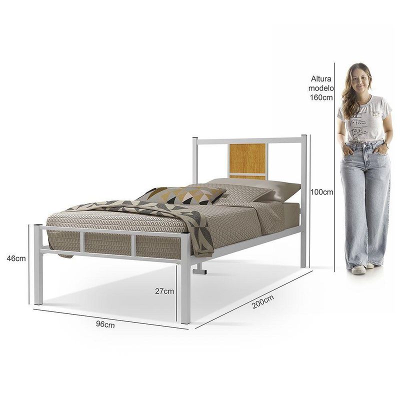 Cama Infanto Juvenil Solteiro Ravena Klm Store Branco/canelaA Cama Solteiro Ravena e a escolha ideal para quem busca um movel funcional e resistente, com design contemporaneo que se adapta a diversos estilos de decoracao. Perfeita para otimizar espacos, ela oferece conforto e seguranca para o uso diario. Estilo discreto e elegante que valoriza seu ambiente.Beneficios para voce: Otimizacao do espaco do quarto, perfeito para apartamentos e quartos menores. Caracteristicas que fazem a diferenca: Nossa cama industrial tem estrado de aco e a solucao ideal para ambientes que exigem robustez, durabilidade e facil manutencao. Completando e dando mais resistencia, ela tambem vem com 5 pe. Design Versatil: Acabamento clean e moderno, que harmoniza facilmente com diferentes ambientes e decoracoes. ATENCAO: Os acompanhamentos de decoracao e itens de eletronicos sao meramente ilustrativos. Caracteristicas: Resistencia para o uso diario Suporta ate 100 kg Para colchao: 88x188 Dimensoes do produto montado: Altura: 100 cm Largura: 96 cm Profundidade: 200 cm Peso: 12 kg Garantia do Fabricante: 03 meses Observacoes: Nao nos responsabilizamos por erros de montagem. Caso veja complexidade em montar sozinho, aconselhamos a contratar um montador profissional de sua confianca! Montagem Simplificada: Acompanha manual para facilitar a montagem rapida e sem complicacoes. Utilize uma parafusadeira para se obter melhor montagem. Nao acompanha colchao!