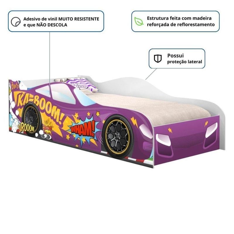 Cama Kaboom Infantil 158cm X 73cm Kmcb RoxoPerfeita para criar um espaço aconchegante, segura e cheio de diversão, nossa cama kaboom infantil combina conforto, estilo e praticidade. Garantindo ainda mais segurança durante o sono e as brincadeiras. Com designs coloridos e detalhes que estimulam a imaginação, ela é a escolha ideal para deixar o quarto do seu filho ainda mais especial. Feita com materiais de alta qualidade e estrutura resistente, garante segurança e durabilidade para os momentos de descanso e brincadeira. Garanta já a cama que vai fazer o sorriso do seu pequeno brilhar!Especificações Técnicas da Cama Kaboom Infantil:- Altura: 45,5cm; - Largura: 72,5cm; - Profundidade: 157,5cm; - Peso: 22kg; - Peso Suportado: 40kg (distribuídos);Diferenciais da Cama Kaboom Infantil:- Material da Estrutura: Estrutura feita com madeira reforçada de reflorestamento. - Adesivo: Adesivo de vinil MUITO RESISTENTE e que NÃO DESCOLA. - Acompanhamentos: Acompanha proteção lateral.Recomendações de limpeza:-Limpar com flanela limpa e seca. Não molhar o móvel e não expor em lugar úmido ou próximo de fontes de calor. Não usar produtos abrasivos.Observações Importantes:- NÃO ACOMPANHA COLCHÃO; medidas para o colchão 70x150cm. - As imagens ambientadas são meramente ilustrativas e podem apresentar itens que não compõe o produto; - Objetos decorativos que aparecem na foto não acompanham o produto; - A Cama Kaboom Infantil chegará desmontada para você, embora a dificuldade de montagem seja baixa, recomendamos que seja feita por um profissional; - Confira as dimensões antes da compra e certifique-se de que o produto passará por elevadores, portas e corredores, já que nossa entrega não inclui a subida de lances de escada, ou o lançamento de produtos; - Ao receber seus produtos, verifique no ato do recebimento qualquer dano na embalagem. Caso tenha alguma avaria, favor não assinar o comprovante de recebimento; - Produto para uso residencial em ambiente interno, não devendo ficar exposto diretamente ao sol, calor e umidades excessivas.