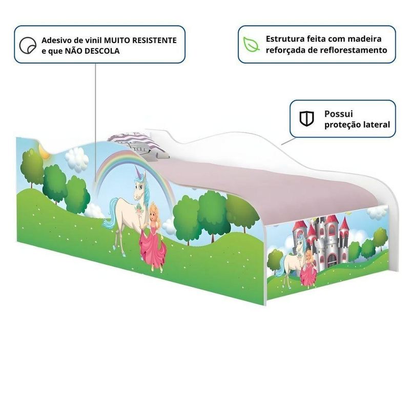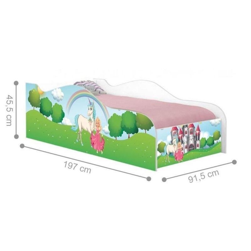 Cama Mobili Solteiro 197cm X 92cm Kmcb Reino Encan.Perfeita para criar um espaço aconchegante, segura e cheio de diversão, nossa cama mobili solteiro combina conforto, estilo e praticidade. Garantindo ainda mais segurança durante o sono e as brincadeiras. Com designs coloridos e detalhes que estimulam a imaginação, ela é a escolha ideal para deixar o quarto do seu filho ainda mais especial. Feita com materiais de alta qualidade e estrutura resistente, garante segurança e durabilidade para os momentos de descanso e brincadeira. Garanta já a cama que vai fazer o sorriso do seu pequeno brilhar!Especificações Técnicas da Cama Mobili Solteiro:- Altura: 45,5cm; - Largura: 91,5cm; - Profundidade: 197cm; - Peso: 28kg; - Peso Suportado: 90kg (distribuídos);Diferenciais da Cama Mobili Solteiro:- Material da Estrutura: Estrutura feita com madeira reforçada de reflorestamento. - Adesivo: Adesivo de vinil MUITO RESISTENTE e que NÃO DESCOLA. - Acompanhamentos: Acompanha proteção lateral.Recomendações de limpeza:-Limpar com flanela limpa e seca. Não molhar o móvel e não expor em lugar úmido ou próximo de fontes de calor. Não usar produtos abrasivos.Observações Importantes:- NÃO ACOMPANHA COLCHÃO; medidas para o colchão 70x150cm. - As imagens ambientadas são meramente ilustrativas e podem apresentar itens que não compõe o produto; - Objetos decorativos que aparecem na foto não acompanham o produto; - A Cama Mobili Solteira chegará desmontada para você, embora a dificuldade de montagem seja baixa, recomendamos que seja feita por um profissional; - Confira as dimensões antes da compra e certifique-se de que o produto passará por elevadores, portas e corredores, já que nossa entrega não inclui a subida de lances de escada, ou o lançamento de produtos; - Ao receber seus produtos, verifique no ato do recebimento qualquer dano na embalagem. Caso tenha alguma avaria, favor não assinar o comprovante de recebimento; - Produto para uso residencial em ambiente interno, não devendo ficar exposto diretamente ao sol, calor e umidades excessivas.
