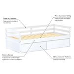 Cama Solteiro Dreams Com 02 Gavetas Madeira Maciça Branco MegamobiliaDETALHES DO PRODUTOMaterial: Madeira Maciça de Pinus de ReflorestamentoPintura/Acabamento: Branco UV (pode mostrar veios da madeira)Medida do Colchão da Cama (cm x cm): 188x88 (Não incluso)Peso Suportado Cama :120 KgDiferenciais:Todo em Madeira, 02 Gavetas.DIMENSÕESLargura (cm):199,5Altura (cm):68Profundidade (cm):96,7INFORMAÇÕES COMPLEMENTARESNecessita de Montagem:SIM (Acompanha Manual de montagem)Atenção:Não realizamos serviço de montagem e instalação. Imagens meramente ilustrativas. Cores e tonalidades podem variar.Garantia do Fabricante:Prazo de 3 meses por defeito de fabricaçãoEMBALAGEMPeso (Kg):44,4Quantidade de Volumes:02 Material Principal: Madeira | Cor Predominante: Branco | Necessita Montagem: Sim | Acompanha Colchão: Não | Tipo de Cama: Solteiro | Altura: 68 | Largura: 199,5 | Comprimento: 96,7 | Peso: 44,4 | Peso máximo suportado: 120 | Cor Via: Branco | Altura com Embalagem: 199,5 | Largura com Embalagem: 96,7 | Comprimento com Embalagem: 96,7 | Peso com Embalagem: 44,4 | Descrição do Tamanho: 199,5 x 96,7 x 96,7 | Tamanho da Cama: 88