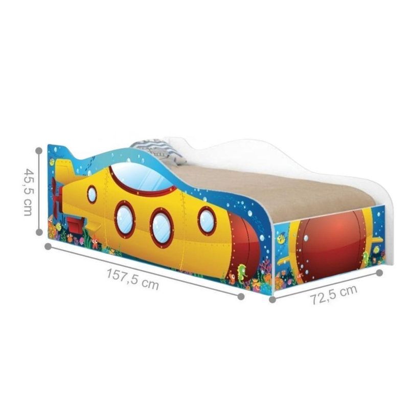 Cama Speciale Infantil 158cm X 73cm Kmcb SubmarinoPerfeita para criar um espaço aconchegante, segura e cheio de diversão, nossa cama speciale infantil combina conforto, estilo e praticidade. Garantindo ainda mais segurança durante o sono e as brincadeiras. Com designs coloridos e detalhes que estimulam a imaginação, ela é a escolha ideal para deixar o quarto do seu filho ainda mais especial. Feita com materiais de alta qualidade e estrutura resistente, garante segurança e durabilidade para os momentos de descanso e brincadeira. Garanta já a cama que vai fazer o sorriso do seu pequeno brilhar!Especificações Técnicas da Cama Speciale Infantil:- Altura: 45,5cm; - Largura: 72,5cm; - Profundidade: 157,5cm; - Peso: 22kg; - Peso Suportado: 40kg (distribuídos);Diferenciais da Cama Speciale Infantil:- Material da Estrutura: Estrutura feita com madeira reforçada de reflorestamento. - Adesivo: Adesivo de vinil MUITO RESISTENTE e que NÃO DESCOLA. - Acompanhamentos: Acompanha proteção lateral.Recomendações de limpeza:-Limpar com flanela limpa e seca. Não molhar o móvel e não expor em lugar úmido ou próximo de fontes de calor. Não usar produtos abrasivos.Observações Importantes:- NÃO ACOMPANHA COLCHÃO; medidas para o colchão 70x150cm. - As imagens ambientadas são meramente ilustrativas e podem apresentar itens que não compõe o produto; - Objetos decorativos que aparecem na foto não acompanham o produto; - A Cama Speciale Infantil chegará desmontada para você, embora a dificuldade de montagem seja baixa, recomendamos que seja feita por um profissional; - Confira as dimensões antes da compra e certifique-se de que o produto passará por elevadores, portas e corredores, já que nossa entrega não inclui a subida de lances de escada, ou o lançamento de produtos; - Ao receber seus produtos, verifique no ato do recebimento qualquer dano na embalagem. Caso tenha alguma avaria, favor não assinar o comprovante de recebimento; - Produto para uso residencial em ambiente interno, não devendo ficar exposto diretamente ao sol, calor e umidades excessivas.