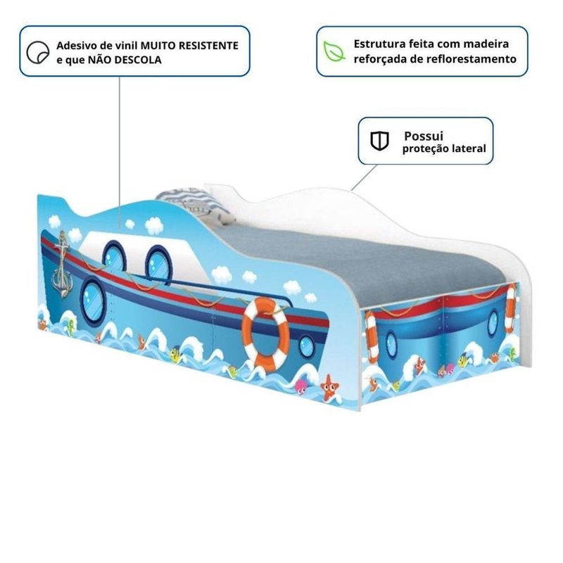 Cama Speciale Solteiro 197cm X 92cm Kmcb Cor NavioPerfeita para criar um espaço aconchegante, segura e cheio de diversão, nossa cama speciale solteiro combina conforto, estilo e praticidade. Garantindo ainda mais segurança durante o sono e as brincadeiras. Com designs coloridos e detalhes que estimulam a imaginação, ela é a escolha ideal para deixar o quarto do seu filho ainda mais especial. Feita com materiais de alta qualidade e estrutura resistente, garante segurança e durabilidade para os momentos de descanso e brincadeira. Garanta já a cama que vai fazer o sorriso do seu pequeno brilhar!Especificações Técnicas da Cama Speciale Solteiro:- Altura: 45,5cm; - Largura: 91,5cm; - Profundidade: 197cm; - Peso: 28kg; - Peso Suportado: 90kg (distribuídos);Diferenciais da Cama Speciale Solteiro:- Material da Estrutura: Estrutura feita com madeira reforçada de reflorestamento. - Adesivo: Adesivo de vinil MUITO RESISTENTE e que NÃO DESCOLA. - Acompanhamentos: Acompanha proteção lateral.Recomendações de limpeza:-Limpar com flanela limpa e seca. Não molhar o móvel e não expor em lugar úmido ou próximo de fontes de calor. Não usar produtos abrasivos.Observações Importantes:- NÃO ACOMPANHA COLCHÃO; medidas para o colchão 70x150cm. - As imagens ambientadas são meramente ilustrativas e podem apresentar itens que não compõe o produto; - Objetos decorativos que aparecem na foto não acompanham o produto; - A Cama Speciale Solteiro chegará desmontada para você, embora a dificuldade de montagem seja baixa, recomendamos que seja feita por um profissional; - Confira as dimensões antes da compra e certifique-se de que o produto passará por elevadores, portas e corredores, já que nossa entrega não inclui a subida de lances de escada, ou o lançamento de produtos; - Ao receber seus produtos, verifique no ato do recebimento qualquer dano na embalagem. Caso tenha alguma avaria, favor não assinar o comprovante de recebimento; - Produto para uso residencial em ambiente interno, não devendo ficar exposto diretamente ao sol, calor e umidades excessivas.