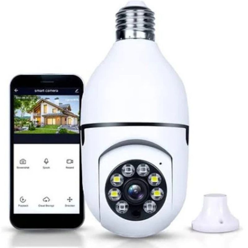 Modernidade e proteção se encontram na Câmera Lâmpada com Bocal e Aplicativo. Instalada facilmente no soquete E27, dispensa obras ou cabos complicados, conectando-se diretamente ao Wi-Fi 2.4Ghz.Com qualidade Full HD 1080p, oferece imagens nítidas em tempo real. Seu recurso de rotação panorâmica garante visão de 360°, cobrindo todos os ângulos do ambiente. O detector de movimento integrado envia alertas imediatos ao celular, garantindo que você nunca perca nenhum detalhe importante.Através do aplicativo intuitivo, o usuário pode acompanhar transmissões ao vivo, reproduzir gravações e até interagir em tempo real com quem estiver no local, graças ao áudio bidirecional. Mesmo em locais escuros, a visão noturna colorida assegura monitoramento eficiente com ajuda dos LEDs embutidos.Compatível com cartão MicroSD de até 128GB, oferece espaço seguro para registrar imagens e vídeos. Seu grau de proteção IP44 garante resistência contra poeira e respingos. Segurança acessível e moderna ao seu alcance.