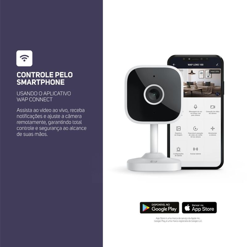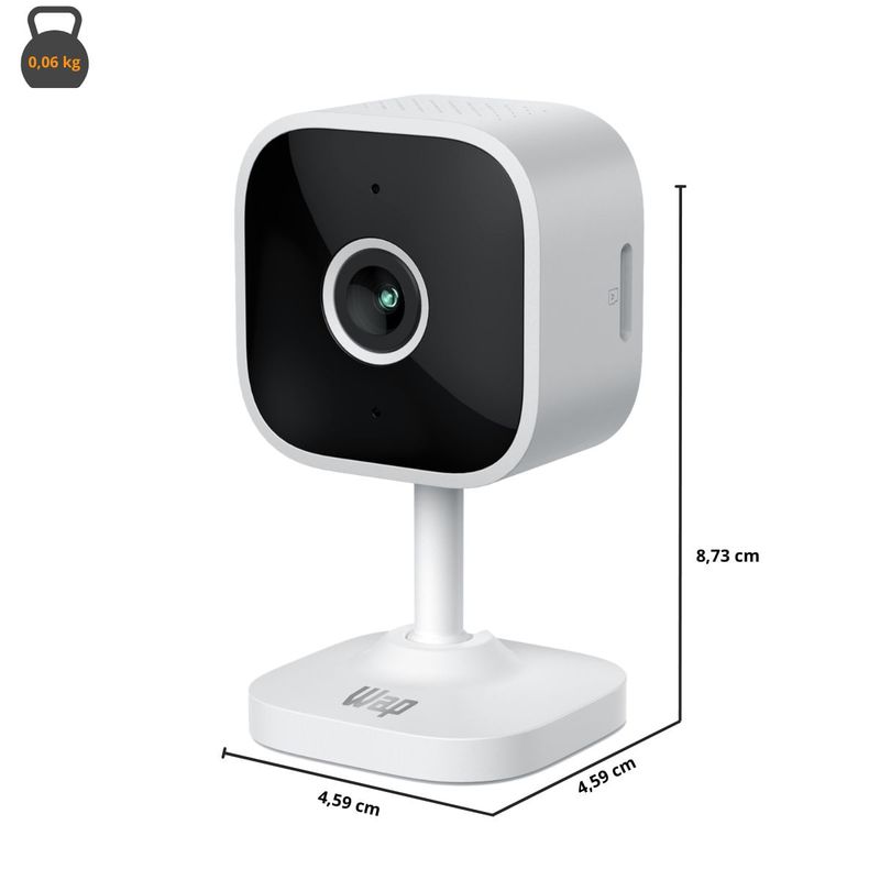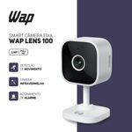 A WAP LENS 100 é a escolha ideal para segurança prática e eficiente em ambientes internos. Compacta, mas poderosa, oferece resolução de 3MP e tecnologia de redução de ruído para imagens nítidas e detalhadas.Com visão noturna por infravermelho, garante monitoramento 24 horas, mesmo em baixa iluminação. Conectada ao aplicativo WAP CONNECT, você pode acionar manualmente o alarme para detecção de movimento e sons, além de acessar o áudio bidirecional para comunicação clara e imediata em tempo real.Armazene gravações na nuvem ou localmente, utilizando cartão SD de até 256GB. A instalação é versátil, permitindo fixação em superfícies planas ou paredes, com ajuste de ângulo de visão de 100° para minimizar pontos cegos.Compacta, discreta e funcional, a WAP LENS 100 é a solução perfeita para monitorar seus espaços internos com tecnologia e praticidade.Itens na embalagem:- 01 Câmera de segurança LENS 100- 01 Manual de InstruçõesAcessórios- 01 Cabo de carregamento USB-C- 01 Carregador de tomada- 01 Câmera- Parafusos para suporteAtributos e Beneficios:- Imagens Nítidas: Três milhões de pixels com redução de ruído para capturar todos os detalhes.- Controle pelo App: Fácil operação diretamente no aplicativo, compatível com Android e iOS.- Armazenamento Versátil: Salve gravações na nuvem ou localmente em cartões SD de até 256GB.- Detecção de Movimento: Identifica atividades no ambiente para maior segurança.- Visão Noturna: Infravermelho garante imagens claras mesmo em baixa iluminação.- Acessórios Incluídos: Carregador e cabo USB-C para praticidade no uso.- Alarme Integrado: Notificações em tempo real para alertá-lo sobre eventos suspeitos.- Ângulo de Visão de 100°: Minimiza pontos cegos, oferecendo monitoramento mais eficiente.- Áudio Bidirecional: Comunicação clara e instantânea em tempo real.Especificações Técnicas:- Potência Elétrica: 5W- Tensão do Carregador: 5V- Corrente Máxima do Carregador: 1A- Resolução: 3MP- Quantidade de Pixels: Até 3 milhões- Distância Focal: 4mm- Tamanho da Abertura (F): 2- FOV (Campo de Visão): 100º- Visão Noturna: IR (Infravermelho)- Distância do Sensor de Visão Noturna: 8-10m- Conexão Wi-Fi: 2,4GHz Wi-Fi 802.11 b/g/n- Criptografia: WEP / WPA / WPA2 / WPA3- Controle Remoto: Não- Conectividade: APP Android / iOS- Comandos de Voz: Não- Áudio Bidirecional: Sim, com cancelamento de eco- Saída de Áudio: Caixa de som- Entrada de Áudio: Microfone- Cartão Micro SD: Máximo 256GB- Conexão de Carregamento: USB-C- Botão de Reinicialização: Sim- Cabo de Carregamento: USB-C- Cor: Branco- Certificado ANATEL: 06700-24-12625Dimensões e Peso:- Dimensões do Produto com embalagem: COMP. x LARG. x ALT.: 7,3 x 7,3 x 13 cm- Peso Bruto: 0,188 kg- Dimensões do Produto: COMP. x LARG. x ALT.: 4,59 x 4,59 x 8,73 cm- Peso Liquido: 0,06kgGarantia:- Produto: 1 Ano (3 meses de garantia legal e mais 9 meses de garantia especial concedida pelo fabricante).- Bateria: 6 Meses (3 meses de garantia legal e mais 3 meses de garantia especial concedida pelo fabricante)