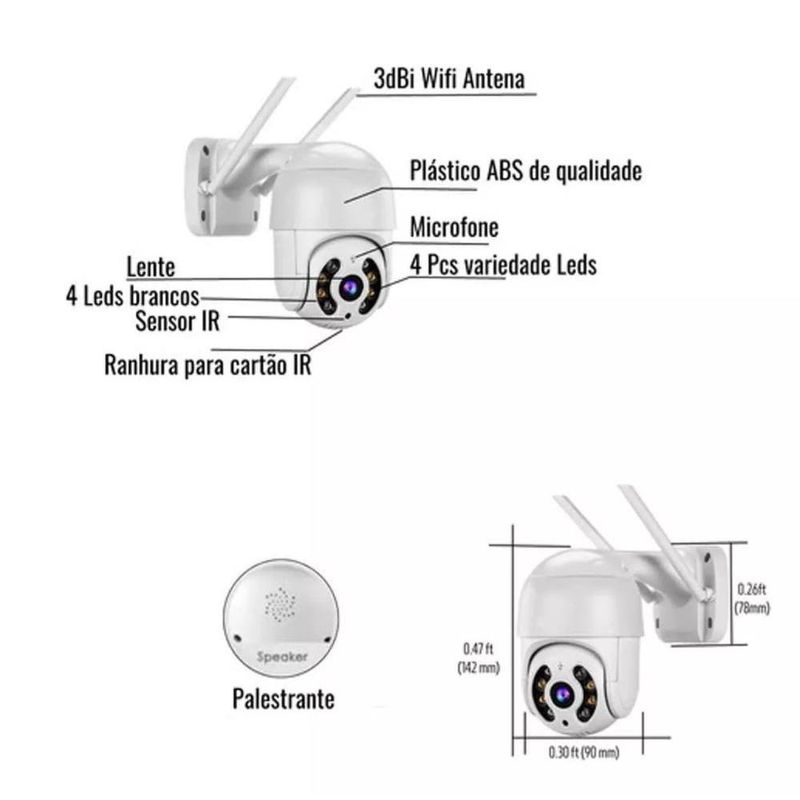 Câmera IP Wifi Inteligente Externa Prova D'água Infravermelho HD 1080P BrancaCom Esta câmera IP externa Wi-Fi infravermelha à prova d'água HD com rastreamento automático (detecção de movimento humano e animal) Permite que você monitore a frente de sua casa ou empresa com apenas uma câmera instalada e pode ser visualizada via smartphone Acesse ao seu dispositivo remotamente do seu telefone de qualquer lugar do mundo. É um dispositivo ideal para segurança residencial e comercial. Pode ser facilmente instalado via rede Wi-Fi ou cabo de rede. Não há necessidade de usar um DVR. Basta baixar o aplicativo fornecido através do código QR na caixa ou na documentação do produto e seguir as instruções de instalaçãoCARACTERÍSTICAS:- Navegação panorâmica com PTZ (giro horizontal 355 graus, vertical 100 graus)- Possibilita o acesso de mais de uma câmera no mesmo aplicativo- Permite o compartilhamento com até 5 aparelhos através de senha- Detecta e segue movimento (auto tracking)- Formato do vídeo: Full HD 1MP / 1.3MP / 2MP- Recepção de sinal Wifi 2.4 Ghz (disponível em todos os pontos de banda larga do Brasil) ou cabo de rede RJ45- Proteção IP66- Alto falante e microfone para comunicação bidirecional. (você escuta e fala com quem estiver no ambiente)- Suporta cartão de memória micro SD de 8GB até 128GB (não incluso)- Visão noturna com infravermelho: até 15 metros- Lente 3.6mm- Alcance de visão de 30 metros- Conta com alarme e notificação direto no celular- Alimentação: Bivolt 110V/220V- Compatível com Android (5.0 ou superior) ou iOS (9.2 ou superior)- Permite gravação em nuvem (serviço pago oferecido pelo aplicativo) ou no cartão de memória (não incluso)Aplicativo utilizado: YooseeCONTEÚDO DA EMBALAGEM:01 - Câmera Wifi tipo Dome01 - Fonte de alimentação bivolt (110V ou 220V)01 - Kit de parafusos e buchas vedantes01 - Manual de instruções