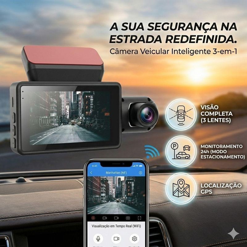 Câmera Veicular Dual Full Hd Frontal E Interna Com Visão NoturnaCâmera Veicular Dual Frontal e Interna Full HD com Visão NoturnaA câmera veicular dual é a solução ideal para quem busca mais segurança, controle e registro completo durante a condução. Com sistema de gravação dupla, ela registra simultaneamente imagens da parte frontal da via e do interior do veículo, garantindo monitoramento total em tempo real.Com design moderno e compacto, a dash cam se integra facilmente ao para-brisa, oferecendo discrição, praticidade e alta eficiência. Ideal para uso diário, motoristas de aplicativo, viagens ou proteção contra imprevistos no trânsito.CaracterísticasGravação simultânea com duas câmeras (frontal e interna)Resolução em alta definição HD/Full HDLente grande angular para maior cobertura da viaSensor infravermelho para visão noturnaDetecção de movimento automáticaGravação em loop contínuoSuporte para cartão de memória micro SDAlimentação via USB ou tomada veicular 12VDesign compacto e discretoInstalação fácil no para-brisaBenefíciosMais segurança ao dirigir com registro completo do trajetoProteção em casos de acidentes ou incidentesMonitoramento interno ideal para motoristas de aplicativoImagens nítidas mesmo em ambientes com pouca luzGravação contínua sem perder arquivos importantesFacilidade de uso no dia a diaAuxilia na prevenção de fraudes e falsas acusaçõesConteúdo da Embalagem1 Câmera veicular dual (frontal + interna)1 Suporte de fixação para para-brisa1 Cabo de alimentação veicular 12V1 Cabo USB1 Manual do usuárioIdeal para quem busca uma câmera veicular completa, com gravação dupla e alta qualidade de imagem para garantir mais segurança e tranquilidade no trânsito.camera veicular dual, dash cam frontal interna, camera carro full hd, camera veicular noturna, dashcam para uber motorista, camera automotiva segurançaAnatel - 2177-24-82810