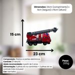 Caminhão De Bombeiro Com Controle Remoto - VermelhoDiversão e aventura garantidas para os pequenos heróis! Ideal para crianças apaixonadas por veículos de resgate, o Caminhão de Bombeiro Controle Remoto proporciona momentos cheios de imaginação, criatividade e emoção. Com design realista, pintura vibrante e detalhes inspirados nos caminhões de bombeiro verdadeiros, o brinquedo estimula o faz de conta e transporta a criança para um universo de missões e salvamentos. O controle remoto é de fácil manuseio, permitindo conduzir o caminhão para frente, para trás e girar para os lados com precisão, tornando a brincadeira ainda mais envolvente. Possui escada móvel que adiciona realismo às operações de resgate e uma estrutura robusta, feita com materiais de alta qualidade, que garantem resistência, durabilidade e segurança. É a escolha perfeita para incentivar a coordenação motora, o raciocínio e o espírito de aventura de forma divertida e educativa.ESPECIFICAÇÕES:Dimensões: 23cm (comprimento) x 9cm (largura) x 15cm (altura)Composição: Plástico e partes eletrônicasControle: 27 MHz RCIdade recomendada: A partir de 3 anosAlimentação: 3 pilhas AA no caminhão + 2 pilhas AA no controle (não inclusas)Peso aproximado: 265gCor: VermelhoRegistro INMETRO: 004174/2025Contém:1 Caminhão de Bombeiro com Controle Remoto - Vermelho
