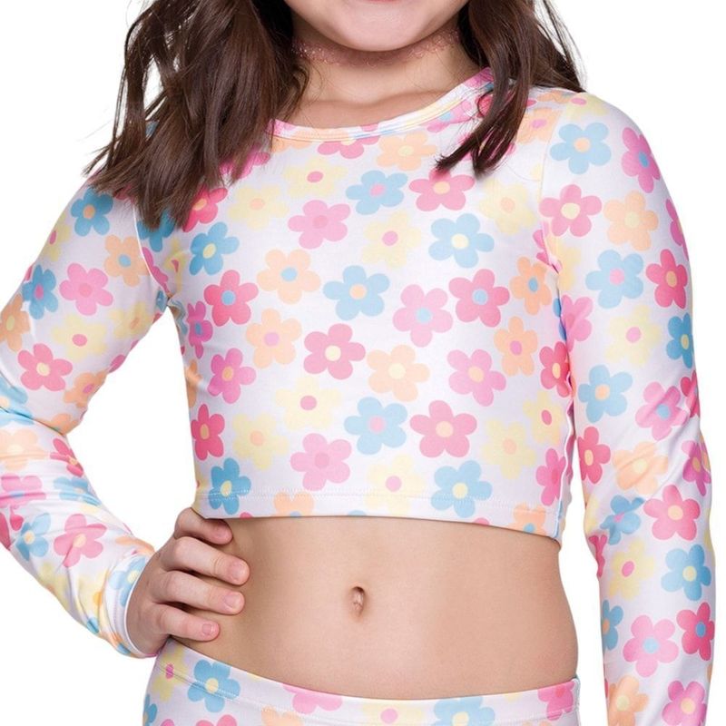 Descrição:A Camisa Cropped Selene Manga Longa Juvenil é confeccionada em poliéster e elastano, oferecendo conforto e flexibilidade para o dia a dia das pequenas. Com proteção UV50+, garante segurança extra contra os raios solares, ideal para momentos ao ar livre. O modelo possui manga longa, agregando mais proteção e um toque charmoso ao visual. A gola redonda e a modelagem cropped dão um ar moderno e descolado à peça. Com design alegre e estampa divertida, essa camisa é perfeita para compor looks descontraídos e cheios de estilo para qualquer ocasião. Medidas aproximadas (cm): 10: 33x29x48 / 12: 35x31x50 / 14: 37x33x52 / 16: 39x35x54 (Largura x Comprimento x Manga.) INFORMAÇÕES: Composição: 85% Poliéster e 18% elastano Forro: 90% Poliéster e 10% elastano Gênero: Juvenil Indicado: Natação