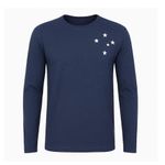 Camisa Cruzeiro Estrelas Manga Longa Adulto Oficial Camiseta feminina azul-marinho em malha macia, com caimento leve, gola redonda e mangas longas, trazendo estampa das estrelas do Cruzeiro no peito, para torcer com elegância. Ideal para usar nos dias de jogos para torçer pelo Cruzeiro. Lavar a mão, não usar alvejantes, secar a sombra. Tecido 62% Algodão 38% Poliéster Tamanhos: P | M | G | GG | EG - Adulto Masculina