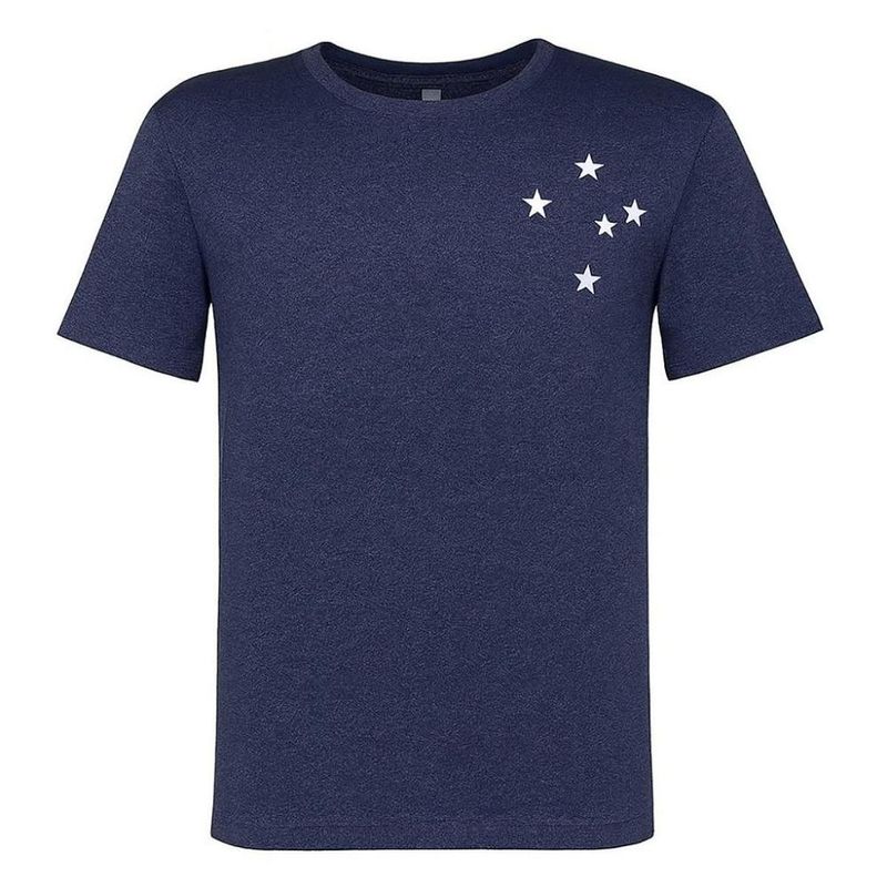 Camisa Cruzeiro Marinho Estrelas Adulto Masculina Oficial Camiseta masculina azul-marinho em malha macia, com caimento leve, gola redonda e mangas curtas, trazendo estampa das estrelas do Cruzeiro no peito, para torcer com elegância. Ideal para usar nos dias de jogos para torçer pelo Cruzeiro. Lavar a mão, não usar alvejantes, secar a sombra. Tecido 62% Algodão 38% Poliéster Tamanhos: P | M | G | GG | EG - Adulto Masculina