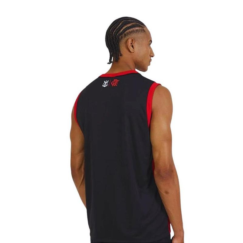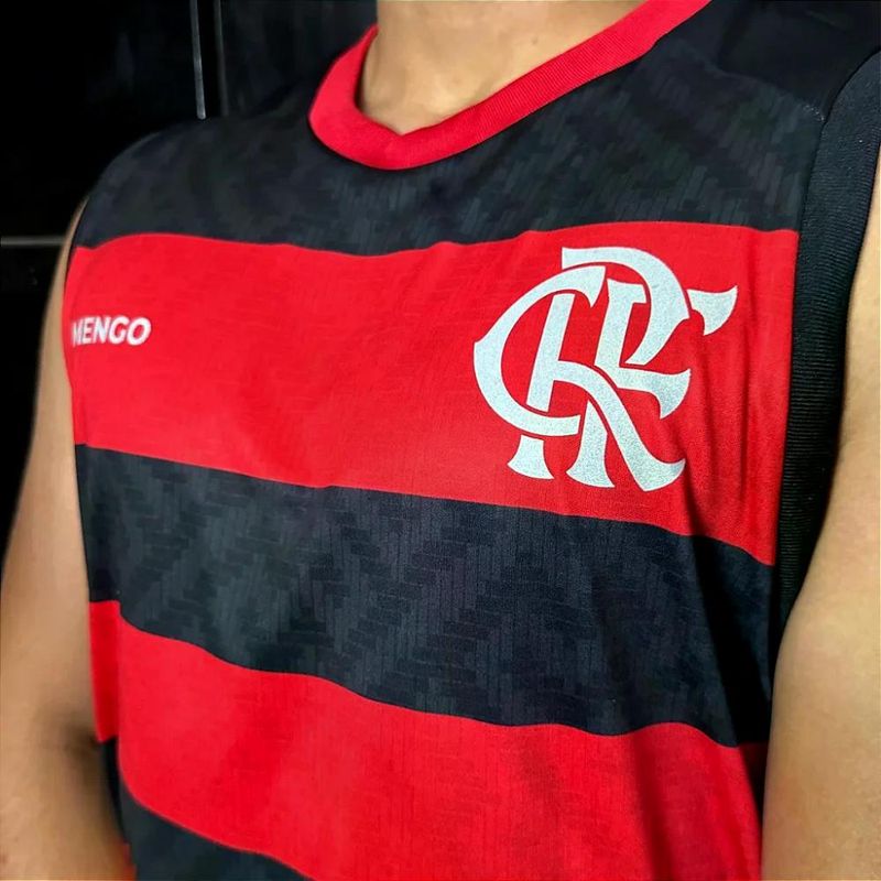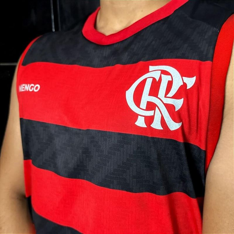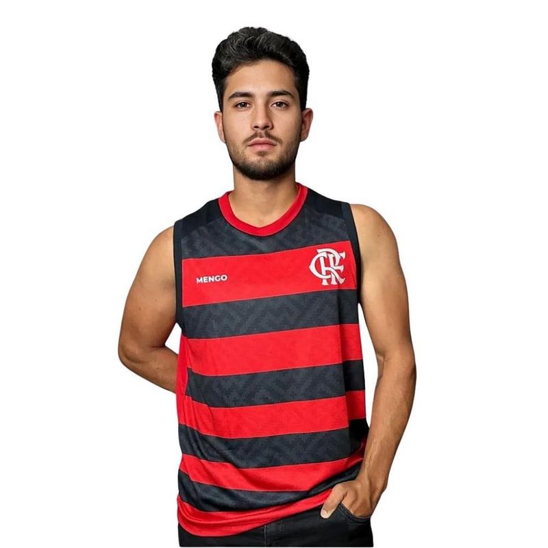 Camisa Flamengo Regata Listrada Presença Adulto Oficial Camisa Flamengo Regata Presença Rubro Negro - Masculino Camisa Flamengo regata confeccionada em tecido poliéster, leve e confortável, ideal para o dia a dia ou para torcer com estilo. Com design moderno em listras horizontais nas cores preta e vermelha, ela destaca o escudo estampado do Clube de Regatas do Flamengo no lado esquerdo do peito, com as letras “CRF” entrelaçadas em branco e a inscrição “FLAMENGO” logo abaixo. A gola redonda vermelha complementa o visual esportivo e vibrante da peça. - Produto Oficial Licenciado Flamengo Informações Adicionais: Tecido: 100% Poliéster Gola: Redonda Mangas: Curtas Escudo: Estampado Medidas aproximadas (A x L): P: 70 x 52 cm M: 72 x 54 cm G: 74 x 56 cm GG: 76 x 58 cm XG: 81 x 59 cm