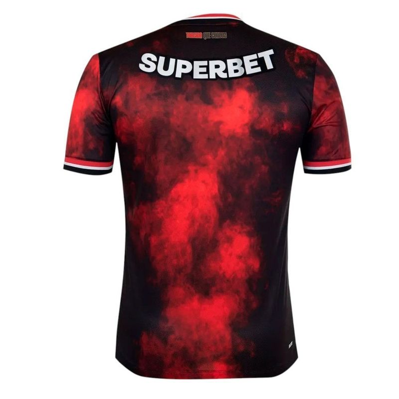 Descrição:Inspirada na paixão da torcida e nas recepções calorosas ao time, a Camisa New Balance Comemorativa São Paulo III 2024 Masculina celebra a festa tricolor nos arredores do Morumbi. Com detalhes esfumaçados em vermelho que remetem à fumaça dos sinalizadores, o manto expressa a energia da arquibancada com autenticidade. Feita em poliéster leve e resistente, é ideal para demonstrar o amor pelo clube em grande estilo. INFORMAÇÕES TÉCNICAS Composição: 100% Poliéster Cor predominante: Vermelha Indicado para: Jogo Escudo: Bordado Gênero: Masculino Origem: Nacional Clube: São Paulo Manga: Curta Gola: Careca DIMENSÕES APROXIMADAS (A x L) P: 71 x 48 cm M: 73 x 51 cm G: 75 x 54 cm GG: 77 x 61 cm 2GG: 79 x 67 cm