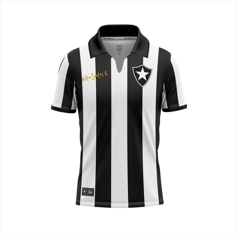 Camisa Retrô Botafogo Nilton Santos Retro Mania - Estilo e Tradição Descrição A Camisa Retrô Botafogo Nilton Santos da Retro Mania é a escolha perfeita para os torcedores que desejam celebrar a história gloriosa do clube com autenticidade e estilo. Esta peça exclusiva homenageia o ícone Nilton Santos, combinando a paixão pelo futebol com a qualidade de um produto licenciado. Desfrute do conforto do algodão 100% e da durabilidade que oferece resistência a lavagem e desbotamento. O escudo bordado digital em alta definição garante um acabamento premium, refletindo a paixão pelo Botafogo em cada detalhe. Ideal para uso casual, eventos esportivos ou como item de estilo no dia a dia, esta camisa é um item indispensável para qualquer alvinegro. Especificações Técnicas Composição/Materiais Material: 100% algodão Tecnologias Aplicadas Não aplicável. Especificações Adicionais Marca: Retro Mania Cor: Preto Acabamento: Escudo bordado digital em alta definição Resistência: Resistência a lavagem e desbotamento Certificação: Produto licenciado pelo Botafogo de Futebol e Regatas Tamanhos Disponíveis: EG, G, GG, M, P Código de Referência: 1589 Instruções de Uso: Ideal para uso casual, eventos esportivos ou como item de estilo no dia a dia. Instruções de Manutenção: Apenas lavagem à mão Temperatura de Lavagem: 40°C Secagem: À sombra