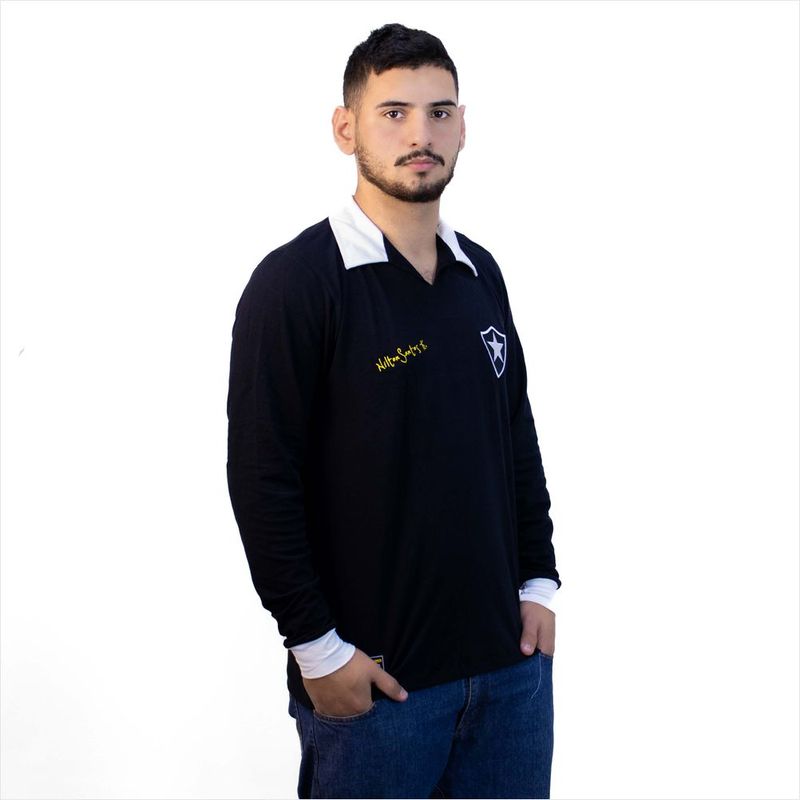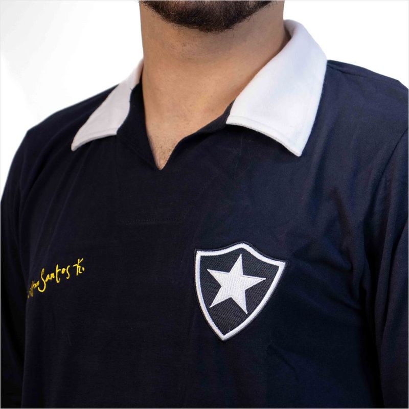 Camisa Retrô Botafogo Nilton Santos Manga Longa - Homenagem e Estilo com Retro Mania Apresentamos a Camisa Retrô Botafogo Nilton Santos Manga Longa, uma peça exclusiva da Retro Mania que celebra a história gloriosa do futebol brasileiro. Ideal para colecionadores e torcedores apaixonados, esta camisa de time masculina é um tributo ao lendário Nilton Santos, o "Enciclopédia do Futebol". Reviva os momentos épicos do Botafogo com esta camisa que une tradição e conforto. Seu design de manga longa remete aos uniformes clássicos, proporcionando um visual autêntico e atemporal. Perfeita para demonstrar seu amor pelo Glorioso em qualquer ocasião, seja no estádio, em eventos casuais ou no dia a dia. Destaques e Benefícios Esta camisa retrô oferece autenticidade histórica, com um design fiel aos uniformes clássicos do Botafogo, permitindo que você vista a história. Desfrute de conforto duradouro, graças ao tecido de alta qualidade que proporciona uma sensação agradável ao toque e é ideal para uso prolongado. É uma verdadeira homenagem ao ídolo Nilton Santos, o "Enciclopédia do Futebol", conectando você ao legado de um dos maiores jogadores de todos os tempos. Sua versatilidade a torna perfeita para colecionar, usar em dias de jogo, eventos esportivos ou como um item de estilo casual no dia a dia. Informações Técnicas Detalhadas Tecnologias Aplicadas Tecelagem Clássica Premium: Garante a durabilidade e o toque suave do tecido, replicando a qualidade dos uniformes da época para uma experiência autêntica. Estampa de Alta Fidelidade: Assegura que o escudo e os detalhes da camisa mantenham a precisão histórica e a vivacidade das cores por muito tempo, resistindo ao uso e lavagens. Ficha Técnica Marca: Retro Mania Produto: Camisa Retrô Botafogo Nilton Santos Manga Longa Categoria: Masculino >> Vestuário >> Camisas de Time Cor: Preto Tamanhos Disponíveis: P, M, G, GG Código de Referência: 1246 Peso do Produto: 0.2 kg Altura da Embalagem: 70.0 cm Largura da Embalagem: 40.0 cm Comprimento da Embalagem: 70.0 cm Gênero Indicado: Masculino Composição do Tecido: 98% Algodão, 4% Elastano Material Principal: Algodão Tipo de Gola: Polo Tipo de Manga: Longa Tipo de Escudo: Bordado País de Origem: Nacional Instruções de Lavagem: Apenas lavagem à mão Coleção: Retrô Garanta Já a Sua Não perca a chance de ter um pedaço da história do Botafogo. Adquira agora a sua Camisa Retrô Botafogo Nilton Santos Manga Longa e vista o legado do Glorioso com orgulho, celebrando a paixão pelo futebol e por um de seus maiores ícones! Conclusão Esta camisa retrô do Botafogo é mais do que um item de vestuário; é um símbolo de paixão, tradição e respeito, conectando você à rica história do clube e ao eterno Nilton Santos, o "Enciclopédia do Futebol".