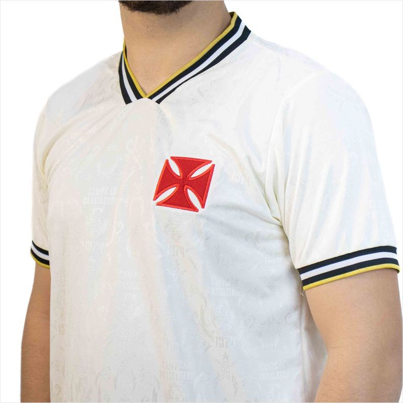 Camisa Retrô Vasco 1974 Jacquard Retro Mania: Autenticidade e História Celebre a rica história do futebol brasileiro com a Camisa Retrô Vasco 1974 Jacquard da Retro Mania. Esta peça exclusiva resgata a glória do time de 1974, oferecendo aos torcedores uma conexão autêntica com o passado glorioso do Vasco. Desenvolvida para os verdadeiros apaixonados, a camisa combina o charme do design retrô com a qualidade do tecido Jacquard, proporcionando um toque de elegância e conforto. É a escolha ideal para exibir seu amor pelo clube em qualquer ocasião. Destaques do Produto Design autêntico que remete à temporada de 1974. Tecido Jacquard de alta qualidade, garantindo durabilidade e um visual sofisticado. Conforto e caimento perfeitos para o uso diário ou em eventos esportivos. Peça exclusiva da marca Retro Mania, especialista em vestuário retrô. Especificações Técnicas Marca: Retro Mania Produto: Camisa Retrô Vasco 1974 Jacquard Cor: Off White Tamanhos Disponíveis: P, M, G, GG Gênero: Masculino Código de Referência: 1166 Peso: 0.2 kg Altura da Embalagem: 70.0 cm Largura da Embalagem: 40.0 cm Comprimento da Embalagem: 70.0 cm Categoria: Masculino >> Vestuário >> Camisas de Time Não perca a oportunidade de vestir a história. Adquira já a sua Camisa Retrô Vasco 1974 Jacquard e mostre seu orgulho vascaíno com estilo e tradição.