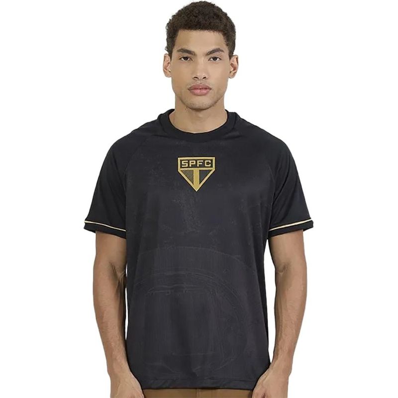 DescriçãoA Camisa São Paulo Frequência é a escolha perfeita para o torcedor que deseja estampar sua paixão pelo clube em qualquer lugar. Com um design alternativo e sofisticado na cor preta, a peça apresenta detalhes em dourado que conferem exclusividade ao visual. O grande diferencial está na estampa "toque zero" que homenageia a energia do estádio Morumbi, capturando a vibração das arquibancadas sem comprometer a leveza da peça. Confeccionada em tecido de alta tecnologia Dry Max, ela garante excelente respirabilidade, mantendo a pele seca e fresca. Sua gola careca com costura reforçada e o escudo estampado centralizado no peito reforçam a durabilidade e o acabamento premium deste produto oficial licenciado. Modelo: São Paulo Frequência; Cor: Preto; Gênero: Masculino; Marca: Braziline; Composição: 100% Poliéster;Tabela de MedidasMedidas Aproximadas (Altura x Largura Peito): P: 73 cm x 56 cm; M: 75 cm x 58 cm; G: 77 cm x 60 cm; GG: 79 cm x 62 cm; 3G: 81 cm x 64 cm;