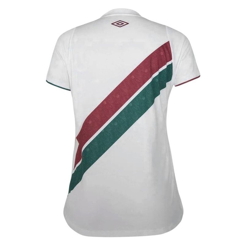 Descrição:As torcedoras do Fluminense podem demonstrar todo seu amor pelo Tricolor com a Camisa II 2024 Umbro Feminina. O manto celebra a tradição e a paixão carioca pelas praias, trazendo nas faixas diagonais uma textura que remete à areia, além de selo especial que valoriza ainda mais o design. Confeccionada em poliéster leve, oferece conforto, caimento moderno e escudo bordado em destaque, sendo perfeita para colecionadoras e para vibrar nas arquibancadas. INFORMAÇÕES TÉCNICAS: - Composição: 100% Poliéster - Gola: V - Manga: Curta - Escudo: Bordado - Indicado para: Jogo - Clube: Fluminense - Origem: Nacional - Gênero: Feminino MEDIDAS APROXIMADAS (Altura x Largura CM): - P: 60 x 44 - M: 63 x 48