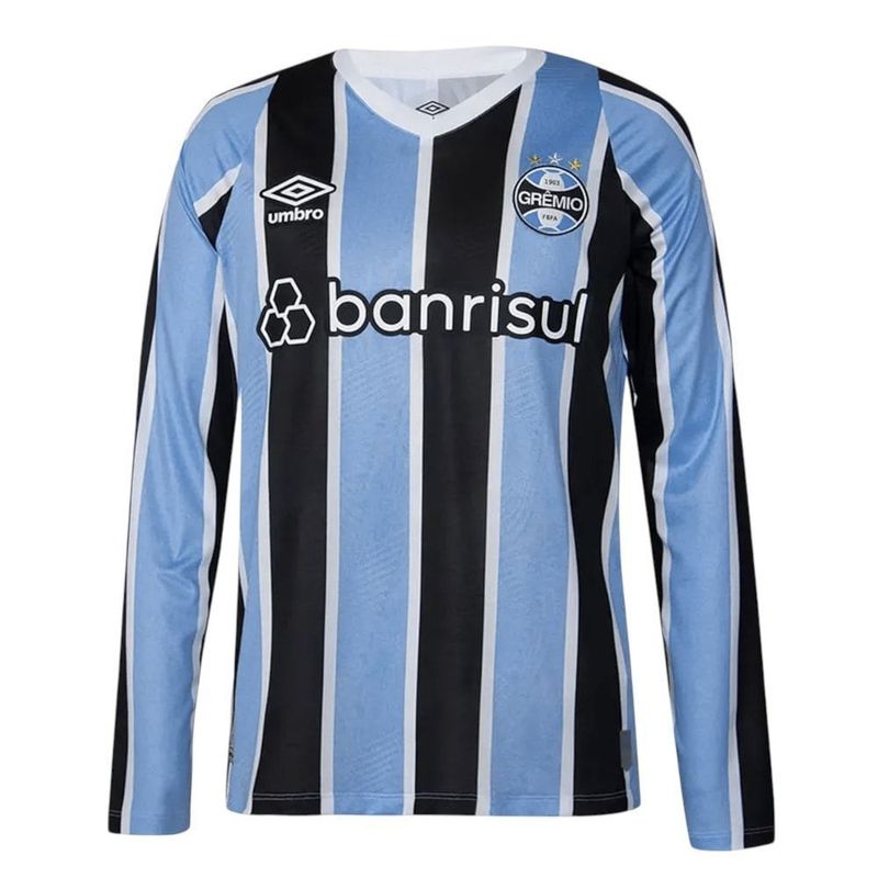 Descrição:A Camisa I do Grêmio 2024 Umbro Manga Longa é o manto perfeito para os torcedores demonstrarem sua paixão pelo Tricolor Gaúcho. Produzida em poliéster e elastano, combina leveza, elasticidade e conforto durante os jogos. O modelo exibe escudo bordado no peito e gola em formato V, além de selo especial na barra em homenagem à conquista da Copa do Brasil de 1989, reforçando a tradição do clube. Ideal para colecionadores e fãs que desejam carregar a história do Imortal em cada detalhe. INFORMAÇÕES TÉCNICAS: - Composição: 95% Poliéster, 5% Elastano - Gola: V - Manga: Longa - Escudo: Bordado - Indicado para: Jogo - Clube: Grêmio - Origem: Nacional - Gênero: Masculino MEDIDAS APROXIMADAS (Altura x Largura CM): - P: 72 x 49 - M: 74 x 52 - G: 76 x 57