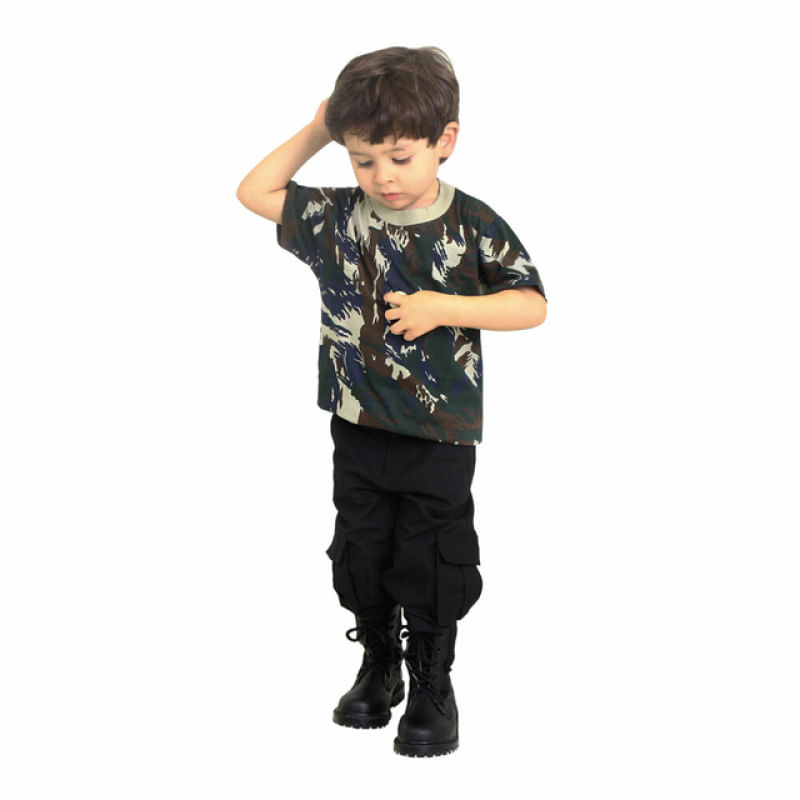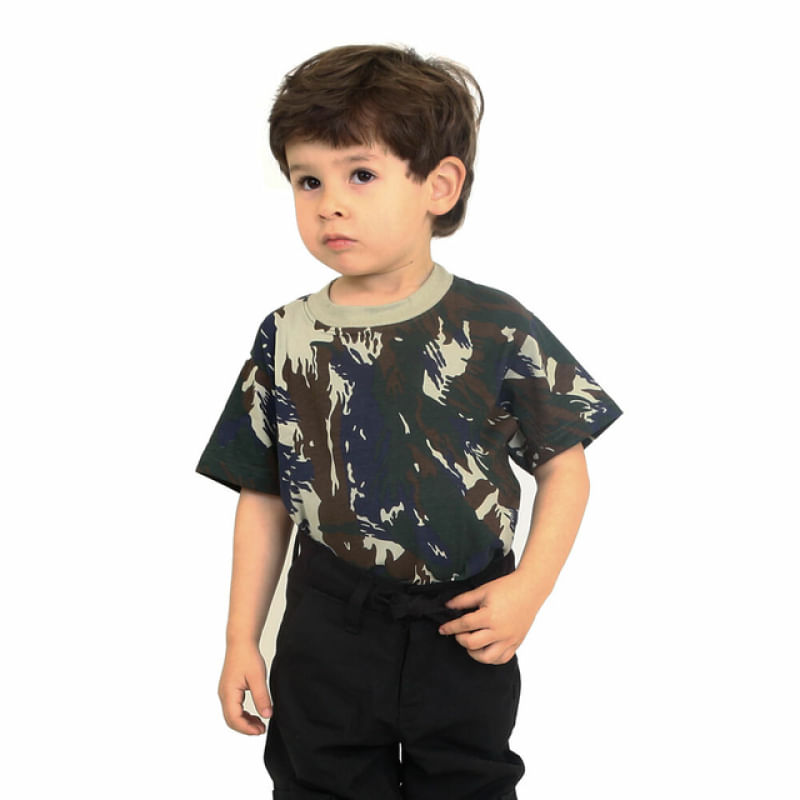 Camiseta Infantil Camuflada FABCamiseta desenvolvida para os pequenos que se espelham nos pais ou que são admiradores da Força Aérea Brasileira. A camiseta infantil é produzida em 100% algodão, o que garante o conforto em sua utilização, principalmente para a criança poder brincar e se divertir com os amigosPossui acabamento da gola com ribana e acabamentos das mangas e barra com bainha. Dimensões aproximadas:* Largura = Medida em superfície plana, para circunferência considere a medida x2.2 - Largura: 33 | Comprimento: 45 cm 4 - Largura: 34 | Comprimento: 47 cm 6 - Largura: 37 | Comprimento: 48 cm 8 - Largura: 39 | Comprimento: 51 cm 10 - Largura: 41 | Comprimento: 53 cm 12 - Largura: 43 | Comprimento: 55 cm 14 - Largura: 45 | Comprimento: 57 cm