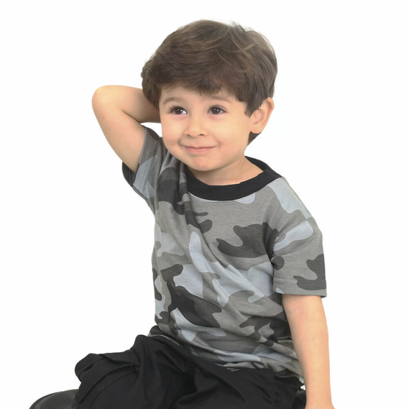 Camiseta Infantil Camuflada UrbanoCamiseta desenvolvida para os pequenos que se espelham nos pais ou que são admiradores das Forças Armadas. A camiseta infantil é produzida em 100% algodão, o que garante o conforto em sua utilização, principalmente para a criança poder brincar e se divertir com os amigos.Possui acabamento da gola com ribana e acabamentos das mangas e barra com bainha. Dimensões aproximadas:* Largura = Medida em superfície plana, para circunferência considere a medida x2.2 - Largura: 33 | Comprimento: 45 cm 4 - Largura: 34 | Comprimento: 47 cm 6 - Largura: 37 | Comprimento: 48 cm 8 - Largura: 39 | Comprimento: 51 cm 10 - Largura: 41 | Comprimento: 53 cm 12 - Largura: 43 | Comprimento: 55 cm 14 - Largura: 45 | Comprimento: 57 cm
