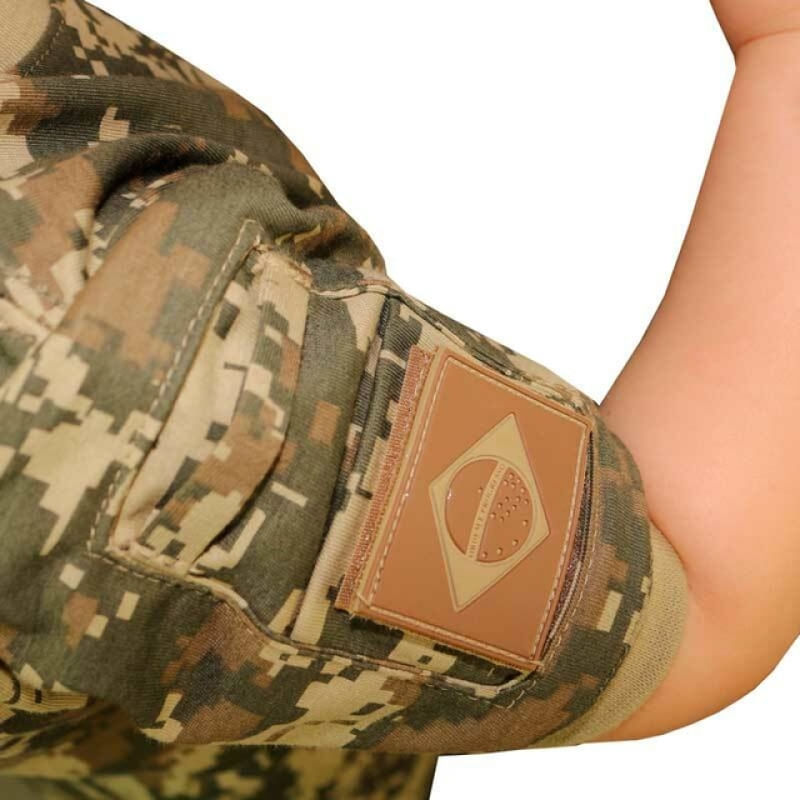 Camiseta Infantil Legacy Digital AreiaPara pequenos guerreiros deixarem seu legado com conforto e segurança, a Treme Terra desenvolveu a Camiseta Infantil Legacy. Produzida em algodão, conta com fecho de contato para aplicação de patch nas duas mangas. Acompanha emborrachado Treme Terra e Bandeira do Brasil. Informações TécnicasPossui ribana nas mangas e na gola, e um bolso na lateral da manga.Composição: 100% AlgodãoCores Disponíveis: Coyote (cód.: 00512CO) | Verde (cód.: 00512VE) | Preta (cód.: 00511PT) | Digital Areia (cód.: 00512DA) | Digital Marpat (cód.: 00512DM) | Tropic (cód.: 00512TP)Tamanhos: 2 | 4 | 6 | 8 | 10 | 12 | 14 Medidas Aproximadas: TamanhoComprimentoLargura24533447356493685138105440125542145644Peso: 190g Cuidados com o ProdutoPara manter o seu produto em perfeitas condições, se atente as seguintes dicas:- Lavar preferencialmente do lado avesso.- Não lavar a seco. - Passar a temperatura máxima de 110ºC – Preferencialmente do lado avesso.- Temperatura máxima de lavagem 40ºC.- Não utilizar secadora.- Não utilizar alvejante a base de cloro.