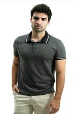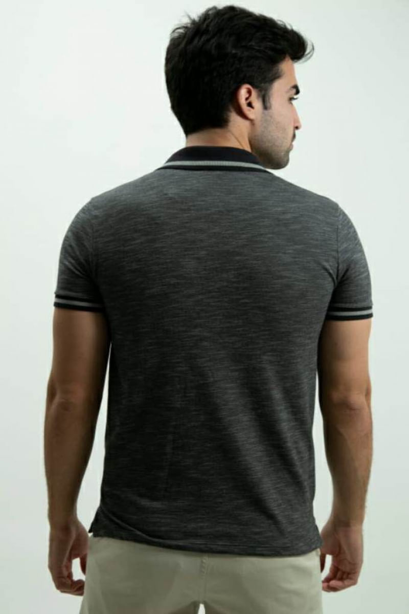 Camiseta Masculina Gola Polo Ixória Cinza Escuro Flamê Pontos