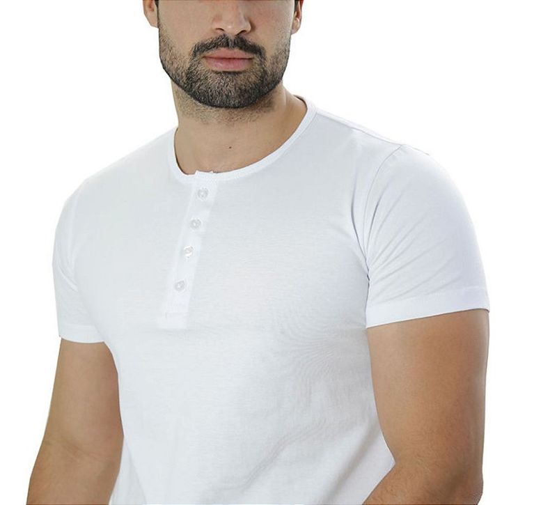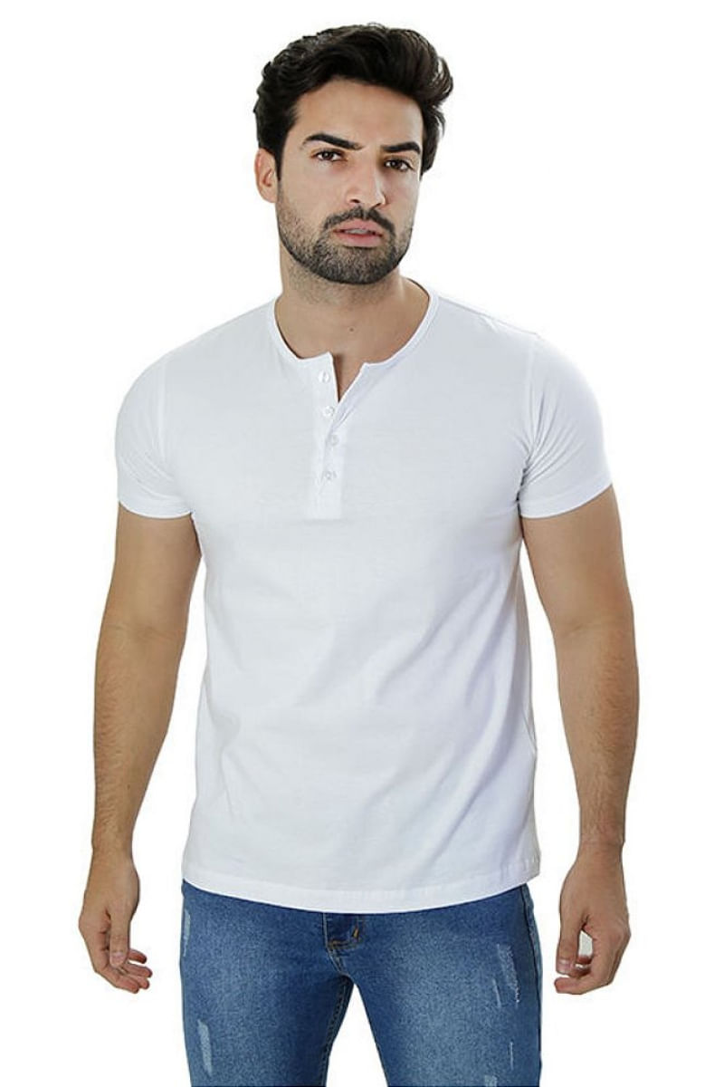 ModaMasculinoRoupasCamisetaCamiseta Masculina Ixória Branca Básica Henley